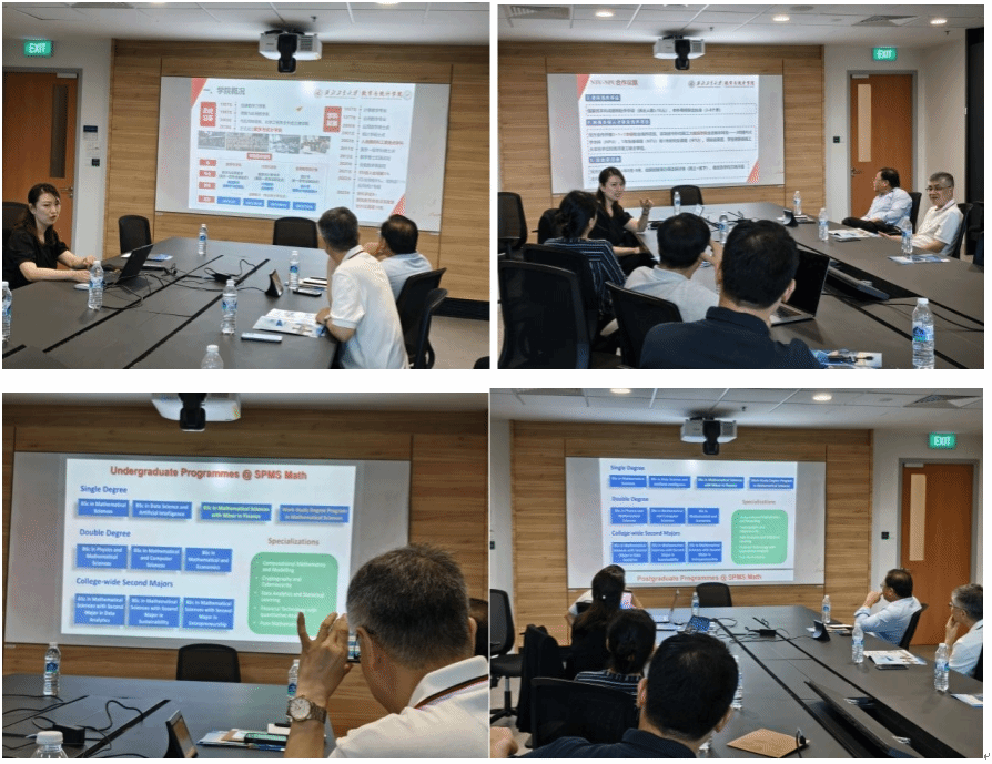 3月27日上午,体彩超级大乐透 代表团前往新加坡南洋理工大学进行合作洽谈。新加坡南洋理工大学王立联,童平,夏克林,Xiang Liming四位教授热情接待。3月27日下午交流会上,体彩超级大乐透 副院长都琳教授详细介绍了体彩超级大乐透概况 、科学研究、国际合作等基本情况,并从科研环境、个人后续发展、薪酬、科研配套设施等多个角度对体彩超级大乐透 以及体彩超级大乐透 的人才引聘政策进行了深入解读。新加坡南洋理工大学数学科学系的专家学者对超级大乐透-官方网站(中国)官方系统 的学术水平和引才政策给予了高度赞赏,并表达了加强合作的愿望。新加坡南洋理工大学童平副教授详细介绍了本硕博各项目的培养方案和实施举措,引发了热烈讨论。双方围绕人才培养、科研合作、学术交流、国际暑期夏令营项目等合作开展了深入洽谈,就本科生短访、赴外毕设、研究生联培和暑期项目初步达成了合作意向。