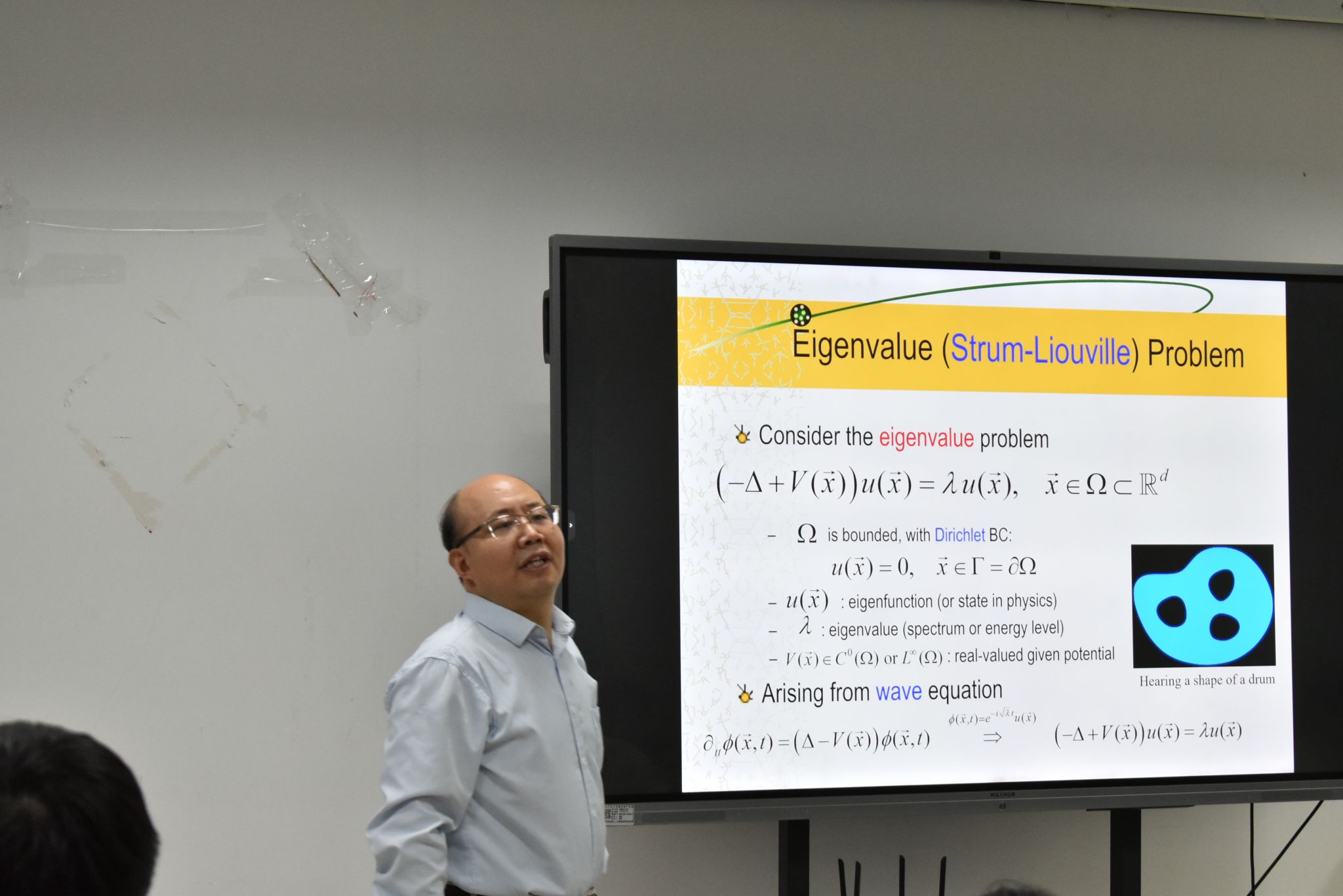 报告伊始,包维柱教授向与会师生详细介绍了新加坡国立大学的概况、教育模式、招生申请流程,以及理体彩超级大乐透 的学科背景和学术发展情况。接着,包教授深入讲解了在带有Dirichlet边界条件的有界区域上,Laplacian和Schrödinger算子特征值渐进性的Weyl定理和Weyl猜想。他接着提出了分数薛定谔算子(FSO)的广义Weyl定律及基本间隙猜想,并分享了从渐进性分析和数值研究方面对Gross-Pitaevskii方程能量和化学势基本间隙的最新研究进展。