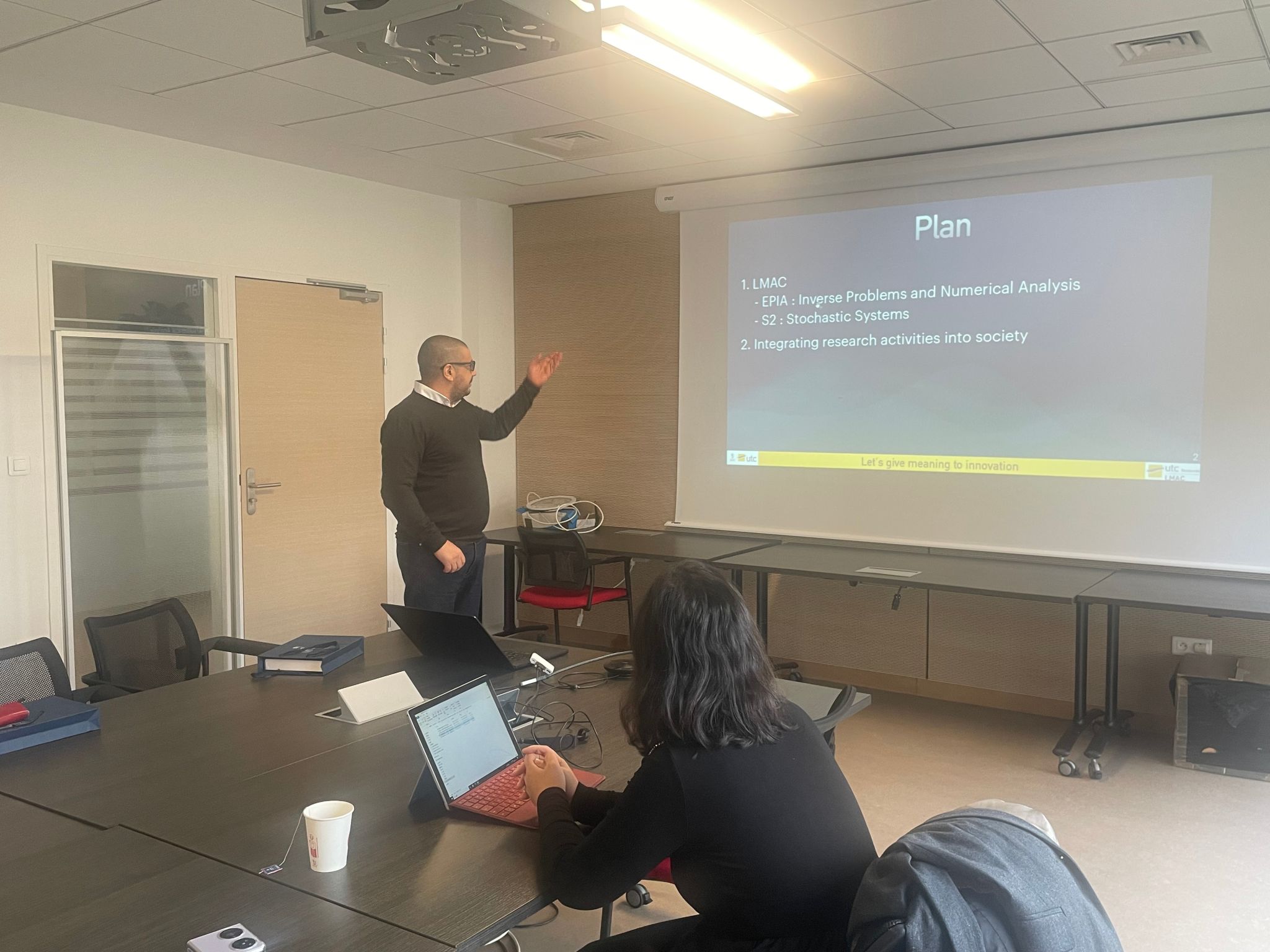 11月30日,经肖曼玉教授前期积极协调沟通,体彩超级大乐透 代表团访问法国贡比涅技术大学数学所,洽谈两院合作事宜。对方出席人员包含数学所主任Salim Bouzebda教授、Faker Ben Belgacem教授、Nikolaos Limnios 教授以及Roverval实验室主任Piotr Breitkopf教授、Ludovic Cauvin教授。