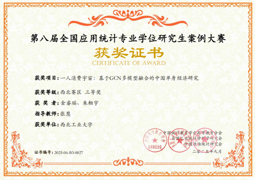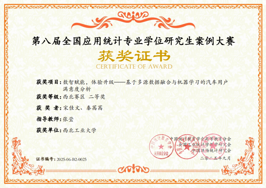 近日,全国应用统计专业学位研究生案例大赛全国组委会公布了2025年第八届全国应用统计专业学位研究生案例大赛区域赛获奖名单。西北赛区共有来自20所高校的153支队伍参加比赛,体彩超级大乐透 2支参赛队伍分获西北赛区二等奖、三等奖各1项,此为体彩超级大乐透 自2023年招收应用统计专硕后首次组队参加该项赛事。