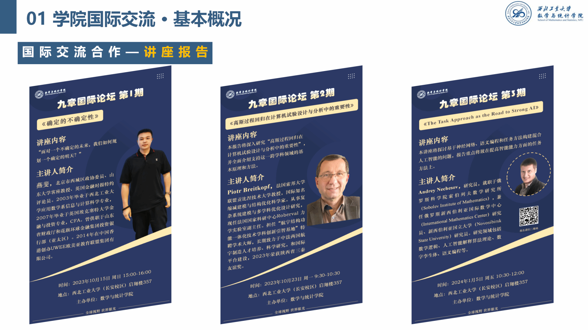 体彩超级大乐透 秉承“深耕欧洲,拓展俄乌,辐射亚洲”工作思路,持续深化与英国布里斯托大学(QS55)、英国纽卡斯尔大学(QS173)、荷兰特文特大学(QS117)等在本硕博人才培养和科学研究层次的交流合作,拓展新加坡国立大学(QS8)、新加坡南洋理工大学(QS26)、香港理工大学(QS65)、香港中文大学(QS47)、香港科技大学(QS60)、香港城市大学(QS75)、加拿大菲尔兹数学科学研究所国际合作渠道;推进与俄罗斯新西伯利亚国立大学(QS246)、Sobolev索伯列夫数学研究所,圣彼得堡国立大学(QS234)及爱尔兰都柏林圣三一大学(QS98)本科海外毕设、硕士双学位和科研合作;成功与意大利巴勒莫大学签订院级博士联合培养合作协议。同时,组织教师赴外蒙古科技大学进行学术交流,续签2+2本科双学位项目(反向培养)。