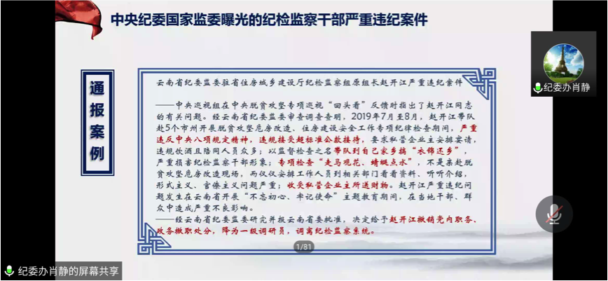 为进一步加强全体党员干部的宗旨意识、道德意识、纪律意识,让党员干部明道德、守底线从而增强廉洁意识,校纪委组织开展2020年“廉洁文化宣传教育月” 法规政策联合宣讲于5月29日通过腾讯会议召开。校党委副书记兼纪委书记张海兰、理学体彩超级大乐透 联合党委书记杨铭、近三百名教师参加此次会议,会议由杨铭书记主持。
