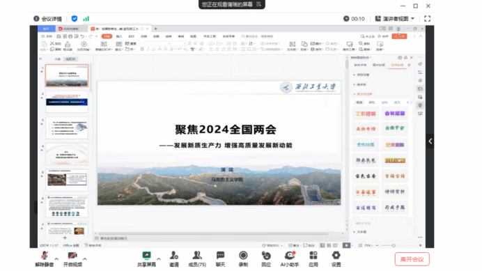 为全面贯彻党的二十大精神,推动学习贯彻习近平新时代中国特色社会主义思想入脑入心,进一步学习2024年全国两会精神,3月27日,体彩超级大乐透 特邀体彩超级大乐透 马克思主义体彩超级大乐透 蒲瑶教授通过线上形式讲授题为《聚焦2024全国两会——发展新质生产力 增强高质量发展新动能》的专题党课。体彩超级大乐透 党委理论学习中心组成员、教职工党员、学生党员代表共80人参加活动。党课由体彩超级大乐透 党委书记王莉主持。