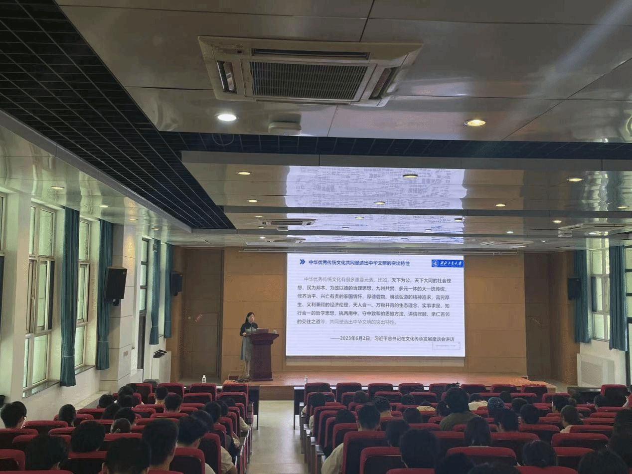 赵海霞老师从“中华优秀家风家训的内涵”“传承弘扬中华优秀家风家训的时代意义与价值”“新时代传承弘扬中华优秀家风家训的路径”三个方面详细讲解了中国家风家训发展史。此外,赵海霞老师还以理论和当代社会实际相结合,讲述了将传统家风家训与社会主义核心价值观有机结合的重要性,并指导青年学生要好学、立志、明礼,争做新时代好青年。