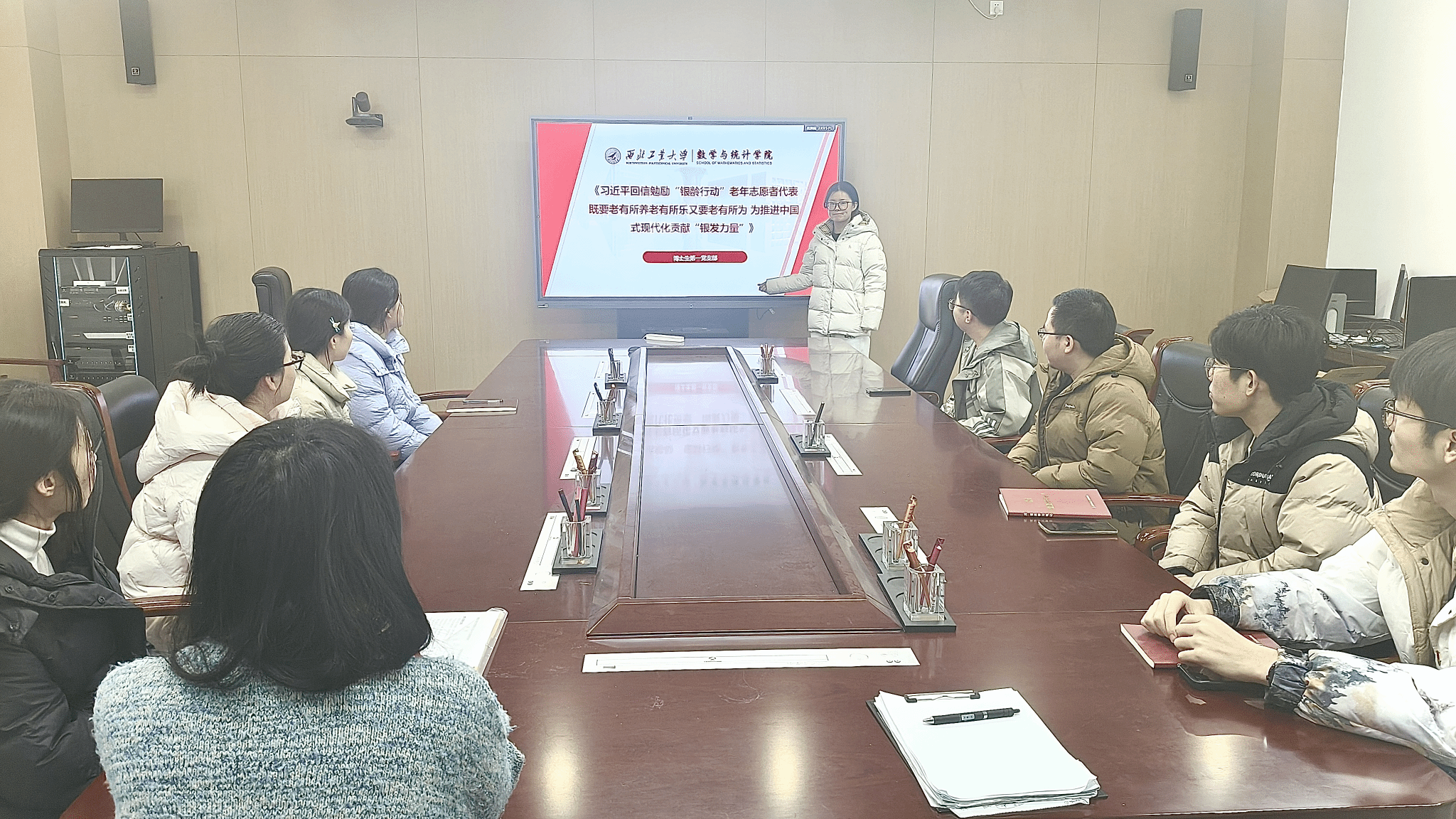 为深入学习习近平新时代中国特色社会主义思想,全面践行党的二十届三中全会精神,12月11日,博士生第一党支部策划举办了学习“习近平总书记给‘银龄行动’老年志愿者代表的勉励回信精神”主题党日活动。本次活动由党支部书记陈彦甫同志主持,支部全体党员共同参与,氛围热烈。