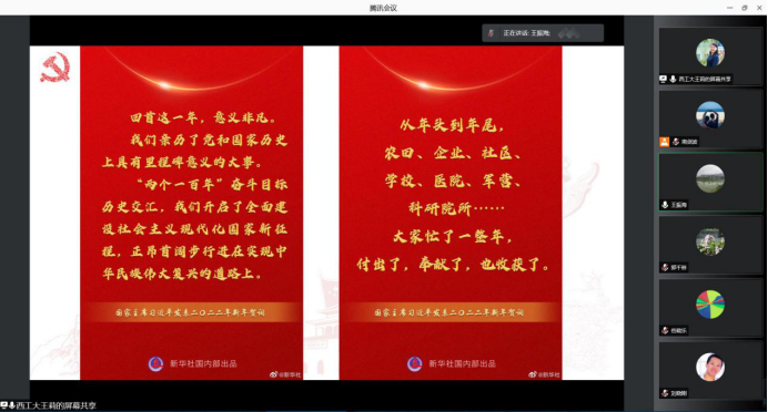 新年前夕,习近平总书记通过中央广播电视总台和互联网发表了二〇二二年新年贺词,体彩超级大乐透 党委第一时间组织全体师生观看了直播。1月8日,体彩超级大乐透 党委理论学习中心组组织全体领导干部成员进一步深入学习习近平总书记2022年新年贺词。贺词中诚挚的问候字字温暖,殷切的期盼催人奋进,引发了大家热烈反响。