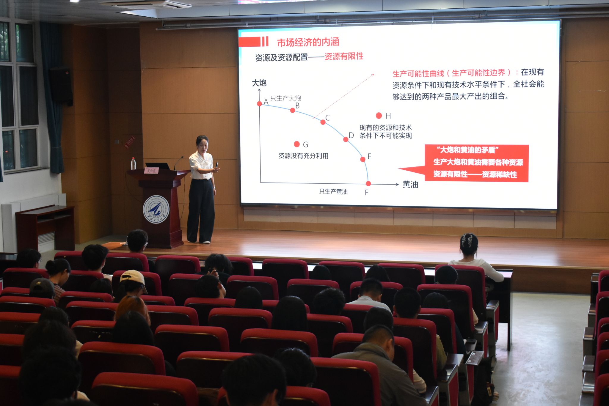 会上,吴老师从社会主义市场经济为切入点,介绍了我国走上了市场经济探索之路的历程。从1978年的探索起步,到如今的全面深化阶段,我国在市场经济建设方面不断突破创新。通过对关键要点的讲解,吴老师让同学们清晰地认识到,当前国际环境错综复杂、国内经济转型步入关键阶段,构建高水平社会主义市场经济体制是一项系统而宏大的工程,与每一位青年学子的未来发展息息相关。同学们纷纷表示,将以此次党课学习为契机,深入学习经济知识,关注国家经济发展动态,努力提升自身素养,为将来投身于社会主义现代化建设、助力高水平社会主义市场经济体制的完善贡献自己的力量 。