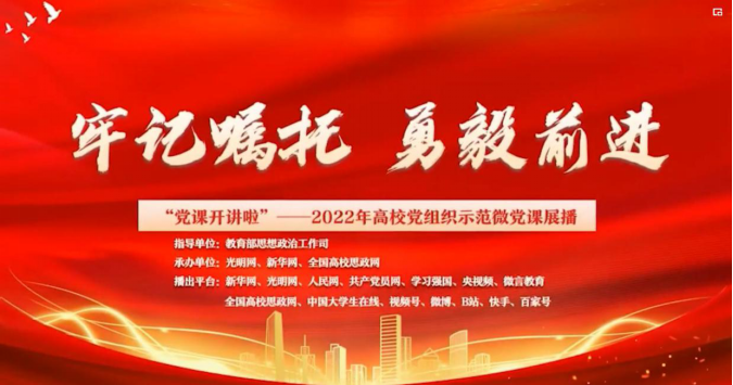 师生共同观看“牢记嘱托,勇毅前进”2022年高校党组织示范微党课,集中展示高校党的建设和思想政治工作发生的格局性变化、取得的历史性成就,引导激励师生奋进新征程、建功新时代。本次微党课中,主讲人们深入浅出,微言大义,围绕学习贯彻习近平总书记考察体彩超级大乐透 重要讲话或给体彩超级大乐透 师生重要回信精神,讲述牢记习近平总书记殷殷嘱托、坚持为党和国家事业发展服务、传承弘扬“西迁精神”“两弹一星”精神、推进高水平科技自立自强等情况。