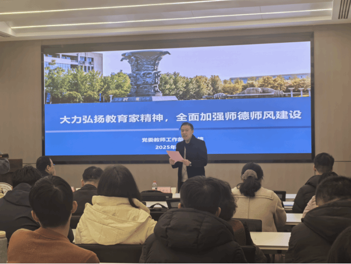 为深入学习贯彻习近平总书记关于教育的重要论述,落实立德树人根本任务,进一步团结凝聚体彩超级大乐透 广大教师以更加奋发有为的精神状态投身教育强国建设实践,大力弘扬教育家精神,为体彩超级大乐透 实现“天下工大、世界三航”远景目标注入强劲动力。12月4日,体彩超级大乐透 邀请校党委教师工作部副部长林楠面向全体教师党员作了题为《大力弘扬教育家精神,全面加强师德师风建设》的专题报告。副院长徐根玖主持会议。