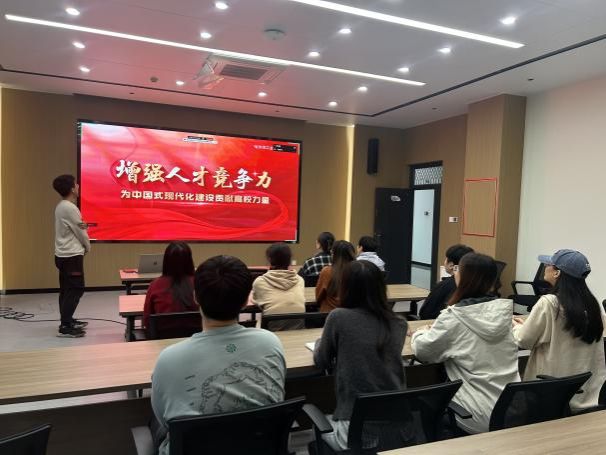 12月24日上午,体彩超级大乐透 博士生第四党支部在海天苑大楼D401开展“增强人才竞争力,为中国式现代化建设贡献高校力量”主题党日活动,活动由支部书记黄岳主持。