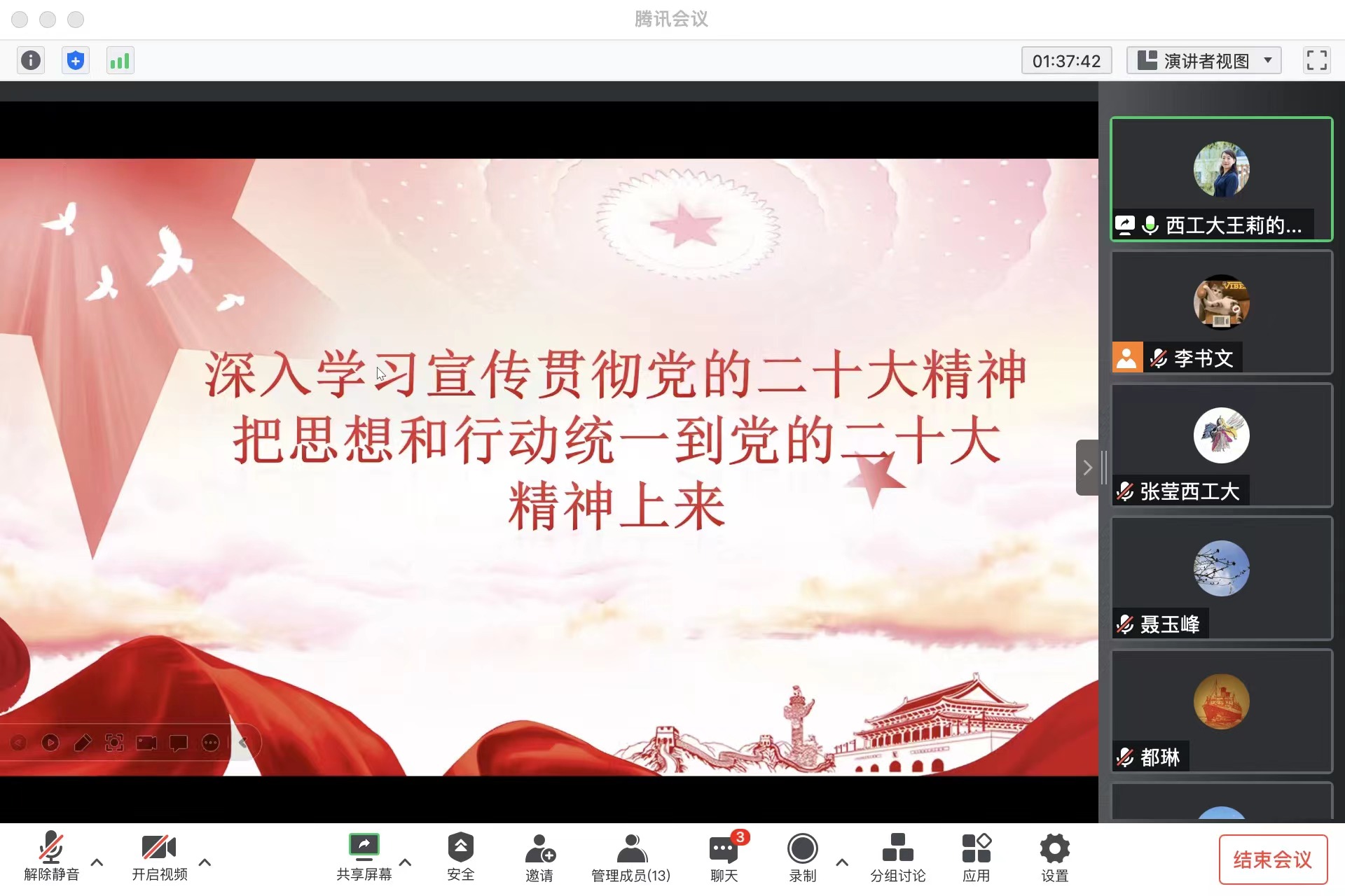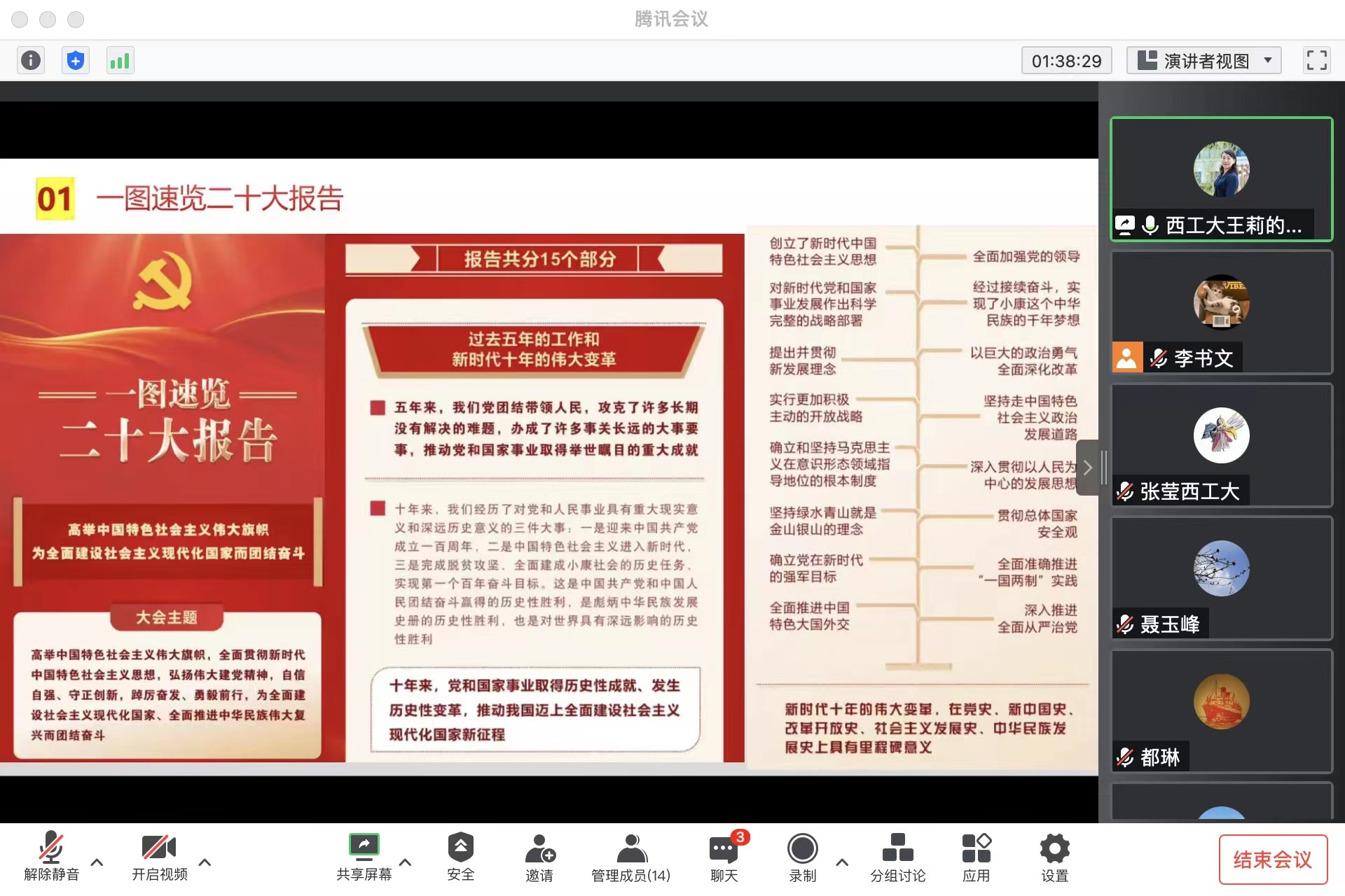 与会成员分别围绕学习党的二十大精神这一主题,开展交流研讨,结合学习体会,立足自身岗位,就如何贯彻落实党的二十大精神,推动《一流本科人才培养行动计划》《一流研究生人才培养行动计划》《科技工作高质量发展行动计划》《人才工作高质量发展行动计划》落地见效进行了重点发言,大家纷纷表示:将进一步全面深入系统学习贯彻党的二十大精神,坚持为党育人、为国育才使命,以高水平科学研究支撑高质量人才培养,用实际行动为我国高水平科技自立自强贡献积极力量。