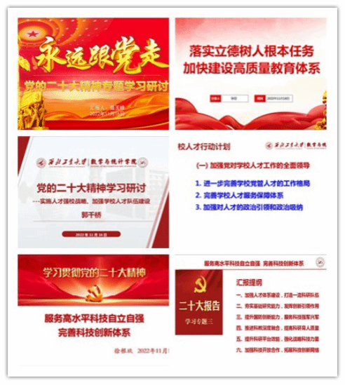 副院长都琳谈到,通过深学细悟二十大报告关于习近平新时代中国特色社会主义思想、科教兴国战略、人才强国战略、创新驱动发展战略等方面的决策部署,深刻认识到新时代国防高校数学学科的新征程和新使命。将以党的二十大精神为指引,积极对接国家重大战略需求和数学学科发展前沿,深入拓展优势方向科研资源,统筹布局交叉创新方向,搭建国际交流合作平台渠道,为构建国防发展和西部建设新篇章贡献数学智慧和力量。