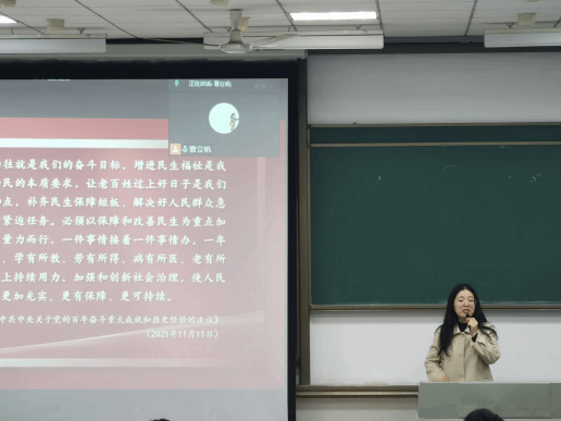 马克思主义体彩超级大乐透 教师温海霞《新时代增进民生福祉,不断实现人民对美好生活的向往》专题党课进行中