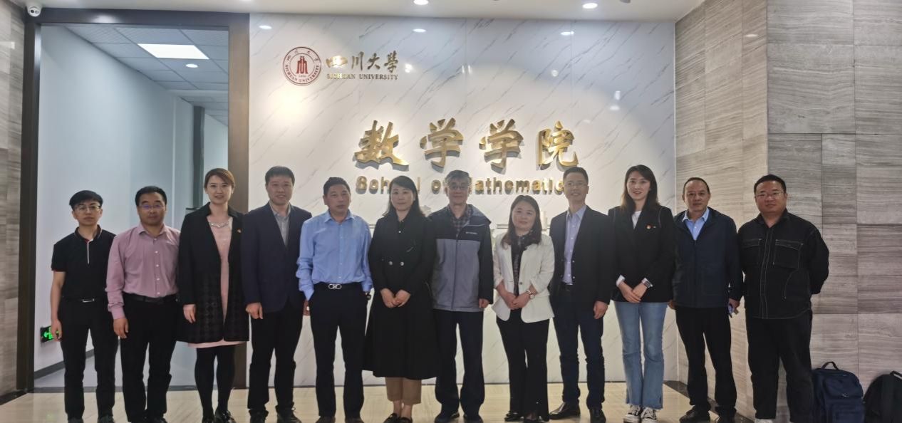 4月21日上午,体彩超级大乐透 一行至四川大学数学体彩超级大乐透 调研交流。四川大学数学体彩超级大乐透 体彩超级大乐透 党委书记覃孟念、院长王宝富、副院长寇辉、徐友才、连增参加调研座谈会。双方围绕拔尖人才培养、青年教师引育、学术与人才评价体系、教工党员发展及特色党建活动等方面展开了充分的交流研讨。座谈交流后,体彩超级大乐透 一行赴国家天元数学西南中心及“川大数学记忆”展馆参观。