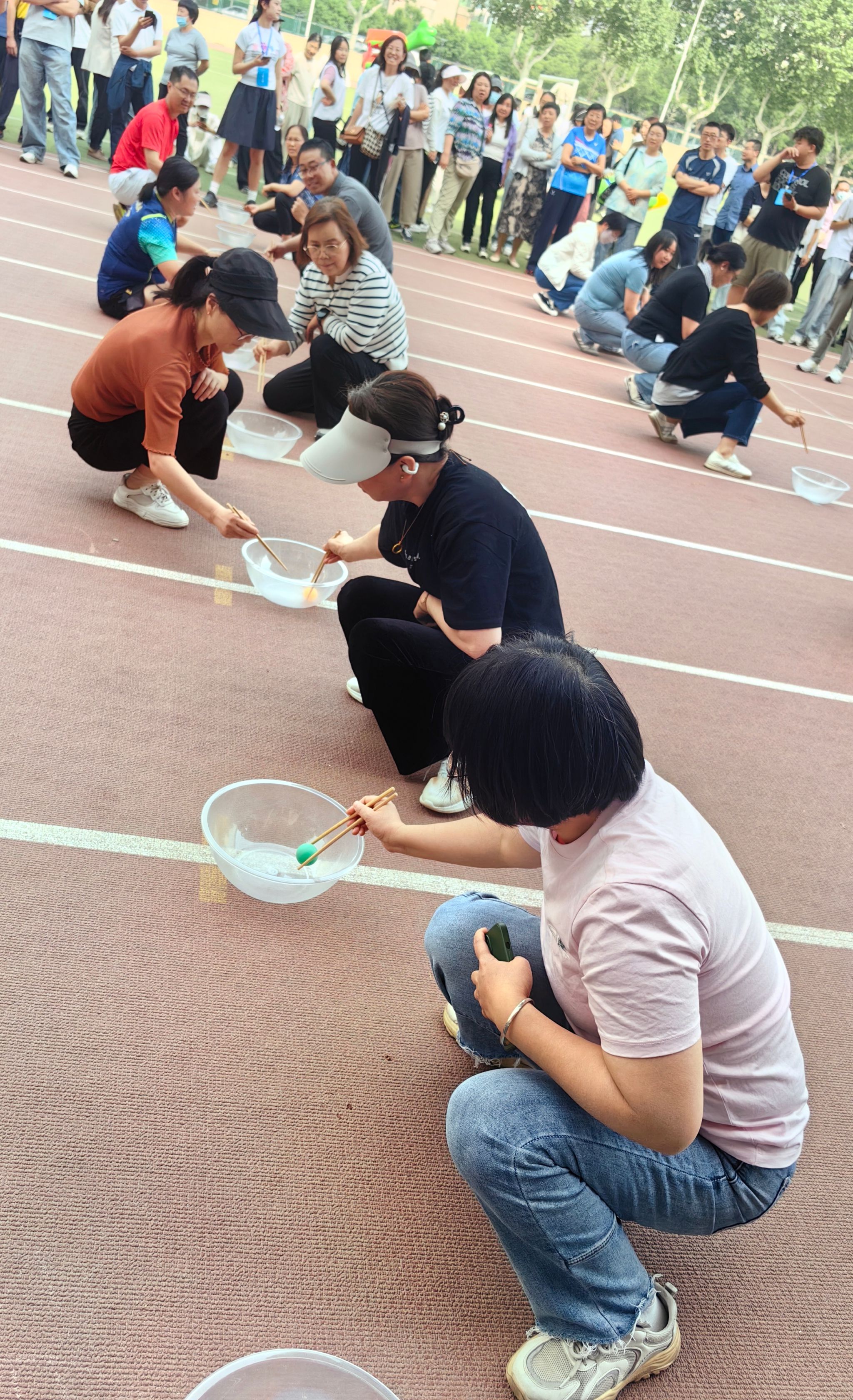 接下来进行的接力夹乒乓球项目同样充满挑战,需要参赛人员具备良好的手部控制能力和专注力。比赛过程中,体彩超级大乐透 老师们手持筷子,全神贯注,小心翼翼地夹起乒乓球,迅速而稳健地向后传递,力求在最短时间内完成接力。在八名老师的通力合作下,最终获得小组第一、总用时第二名。老师们在比赛中展现出的专注和细致,也赢得了现场观众的阵阵掌声。