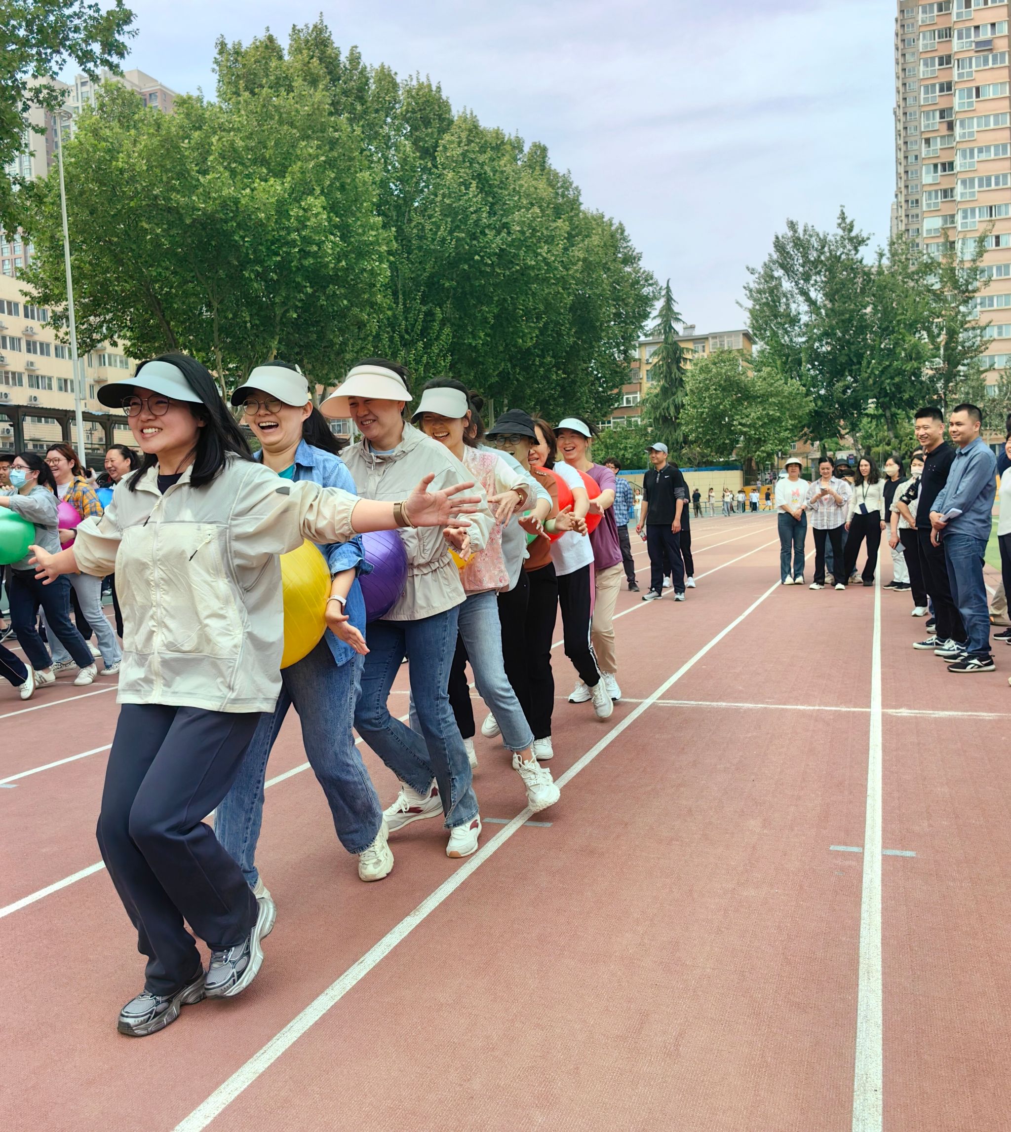 在率先进行的夹球跑项目中,体彩超级大乐透 参赛老师们一字排开,夹住赛事用球,稳步而快速地向终点前进。她们配合默契,步伐一致,成功避免用球掉落,最终以出色的成绩斩获小组第一。该项目不仅考验了老师们的身体协调能力,更凸显了团队间的信任与配合。