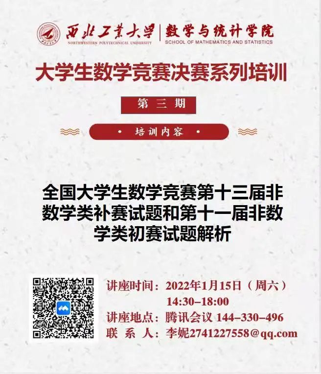 预告|西北工业大学大学生数学竞赛决赛系列培训第三期