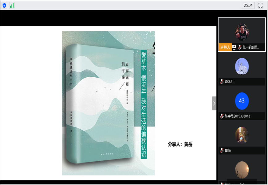 每本书都有自己独特的意蕴,此次线上读书分享会,同学们从中了解到很多文学知识,扩充了自己的知识面,我们与理同行又以文化人,争做文理兼备的青年。