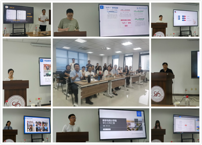 15位专兼职辅导员依次汇报了自己的工作内容。专职辅导员主要从自身所带年级入手,一方面主要从学生的基本数据、思想状况、学风建设、安全稳定以及日常常规工作展开,展示了年级数据汇总,提出了存在的问题以及可实施方案。另一方面主要讲述了自身的专项工作,从学习支持辅导中心、创新创业以及各类专项活动,重点了解学生的学习、生活状况。组建心理辅导站,排解学生压力,进行新生适应访谈以及各类竞赛活动。制定各类体彩超级大乐透 管理制度,积极进行心理安全工作,确保学生的日常安全稳定。同时在建党百年之际,以特色党建活动为抓手,七个一系列活动为日常工作积极进行组织。下一步工作计划也主要围绕学生日常工作进行,做到善始善终、尽善尽美。