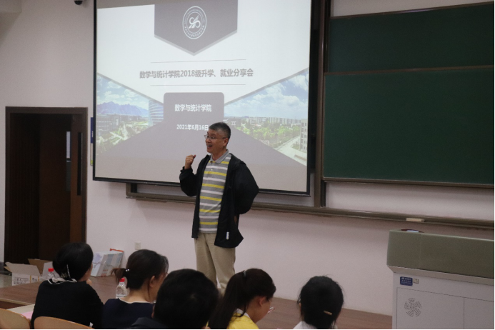 2021年6月16日,体彩超级大乐透 2018级本科生升学、就业分享会于教学西楼C406顺利举办。出席本次会议的有体彩超级大乐透 院长聂玉峰、党委副书记(主持工作)王莉、党委副书记张莹、副院长都琳、应用概率系主任王亮、计算科学系主任王晓龙,学生职业发展指导服务中心主管朱莉,2018级本科生辅导员戴卓、研究生教学秘书杨洋、本科生教学秘书常昕烨等,体彩超级大乐透 2018级全体本科生参加了此次大会。