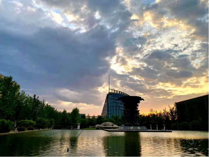 在我们长安校区的东大门广场上,也复刻着一组叹为观止的何尊组雕设计。这边是象征着国家的何尊雕塑,那边是跪地低头的持剑武士。不由地将那方小小青铜器的特点与我们工大学子的使命联系起来,即使默默无闻,也甘于奉献,为国铸荣光,我辈义不容辞。