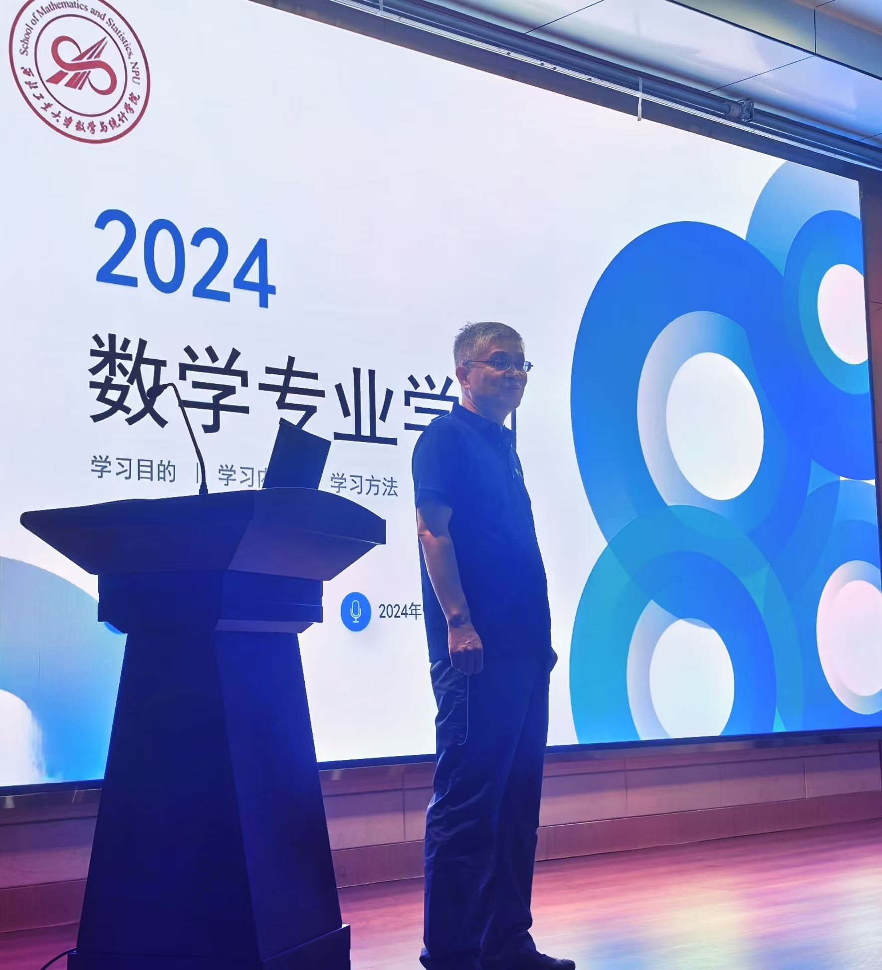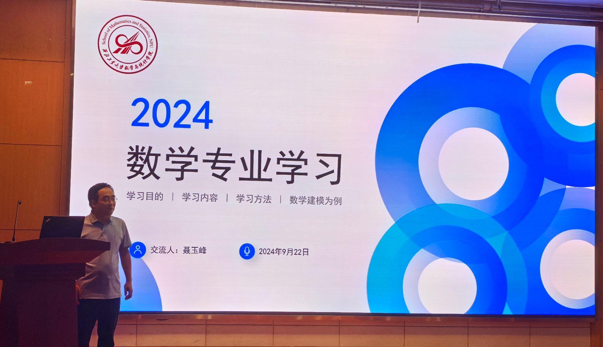 9月22日, 体彩超级大乐透 院长聂玉峰为2024级149名本科新生讲授了关于数学专业学习的主题思政课,引领大家进一步深刻体会体彩超级大乐透 “坚持‘科学问题导向,应用问题驱动’,践行‘数学+’、‘+数学’的创新人才培养模式”以及未来建成人才培养与科学研究并重、应用特色鲜明的国内一流体彩超级大乐透 的远大目标。体彩超级大乐透 数学科学系主任陆由、计算科学系主任赵俊锋、应用概率统计系主任王亮、院长助理兼2024级本科生辅导员班凯共同聆听了这生动的一课。报告会由副院长郭千桥主持。