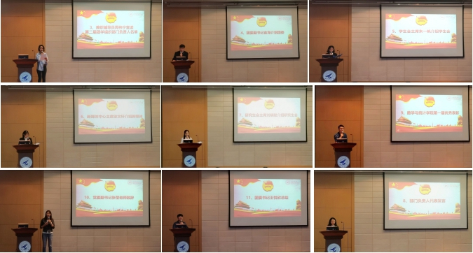 紧接着,团委副书记俞海向我们介绍团委下属部门及职能,学生会执行主席朱一帆介绍学生会基本架构及改革情况,新媒体中心主席徐文轩介绍新媒体职能及未来规划。此外,本次会议还特别邀请了研究生会主席刘晓聪介绍研究生会基本概况。团学骨干们以身作则,用自身优异的成绩告诉新成员们,学生工作应“不忘初心共筑梦,砥砺前行同成长”,激励新成员们开拓进取,锐意创新,与时俱进,再创辉煌。接下来,部门负责人代表刘娟发言,她谈到自己参加学生工作的收获,不仅学会了新技能,还收获了自信,让每一位团学组织的成员感同身受的同时也更加坚定了前进的信念。