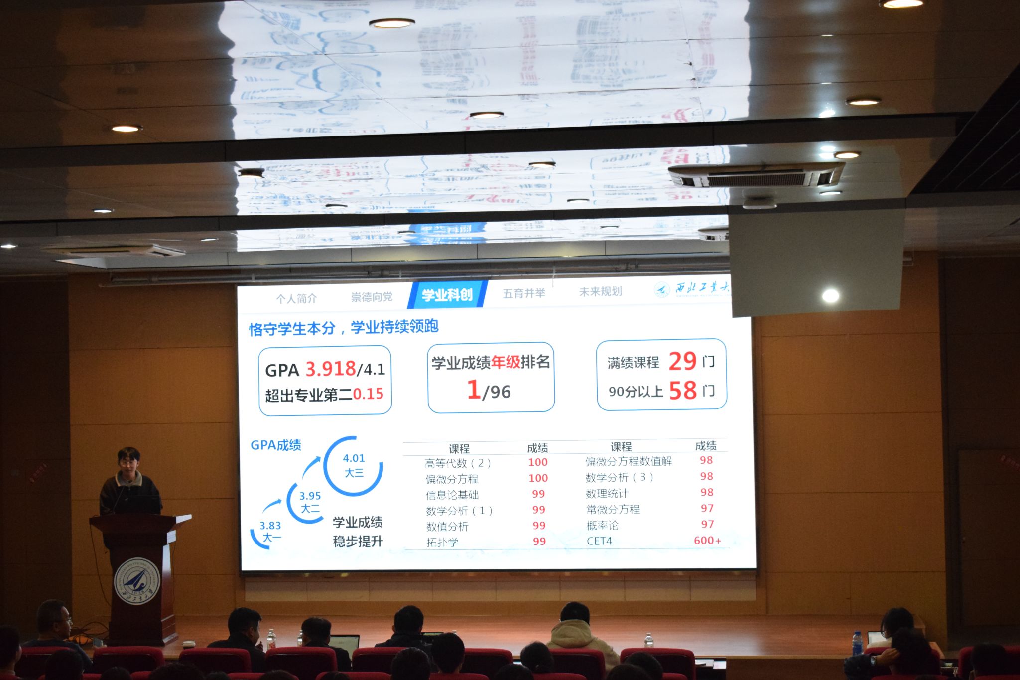 会上,两位刚刚在体彩超级大乐透 2024年模范班级、优秀学生标兵评选展示活动中,分别以全场答辩第一、第七,为体彩超级大乐透 拿下殊荣的“学长”,再次展示了个人的答辩技巧与优秀的成长事迹,赢得台下观众的频频掌声。同时针对2024级已经结束的数学分析期中考试,两位学长以自身经历解答了如何通过有效的时间管理更好地在学生工作和学习任务中找到平衡点的问题,并希望每名学弟学妹都能以高要求、高目标、专注自我提升与自我超越。