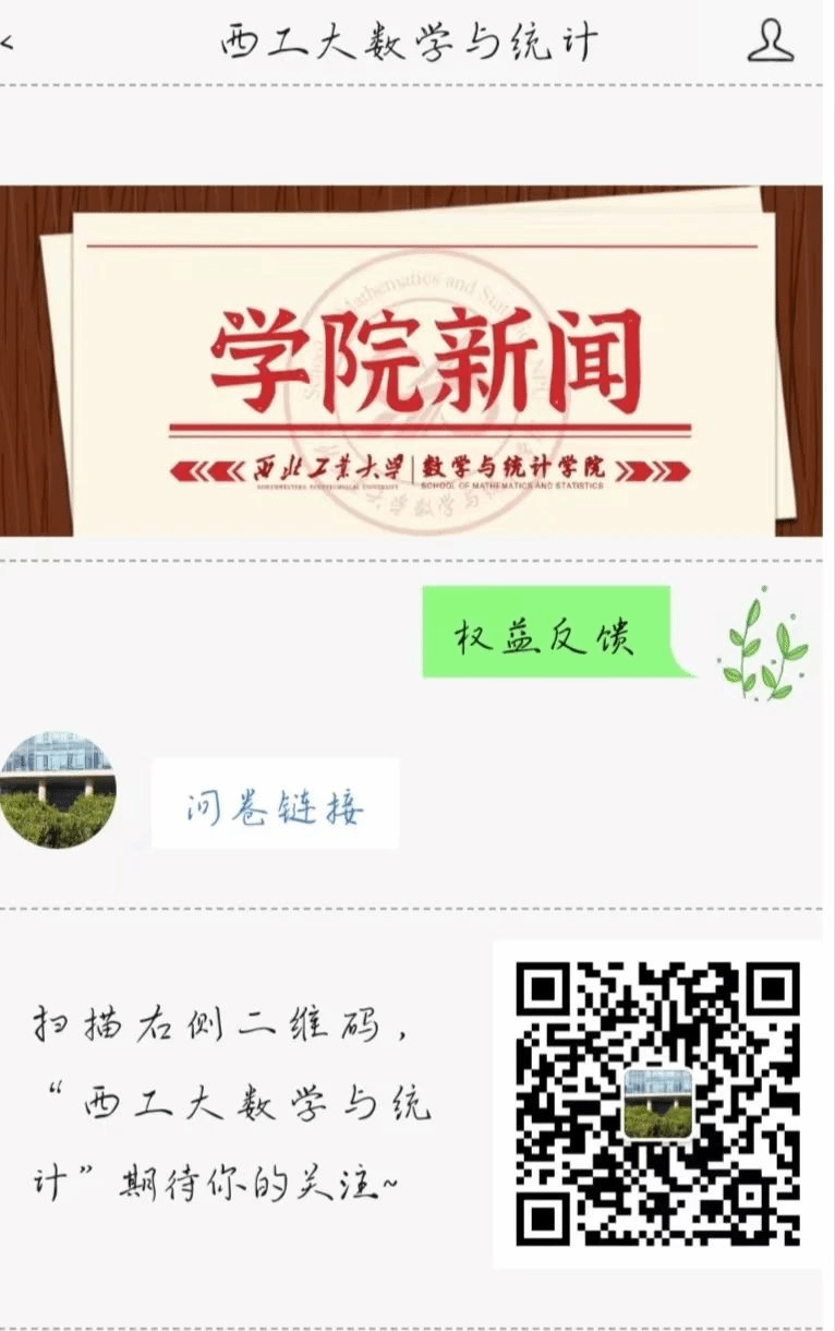 2.在“西工大数学与统计”微信公众号内回复“权益反馈”,即可获取权益问卷链接。同时体彩超级大乐透 小树苗动态也会定期发送问卷链接,大家可以在问卷里对自己的权益问题进行反馈,NPU小树苗QQ号:2446167785。