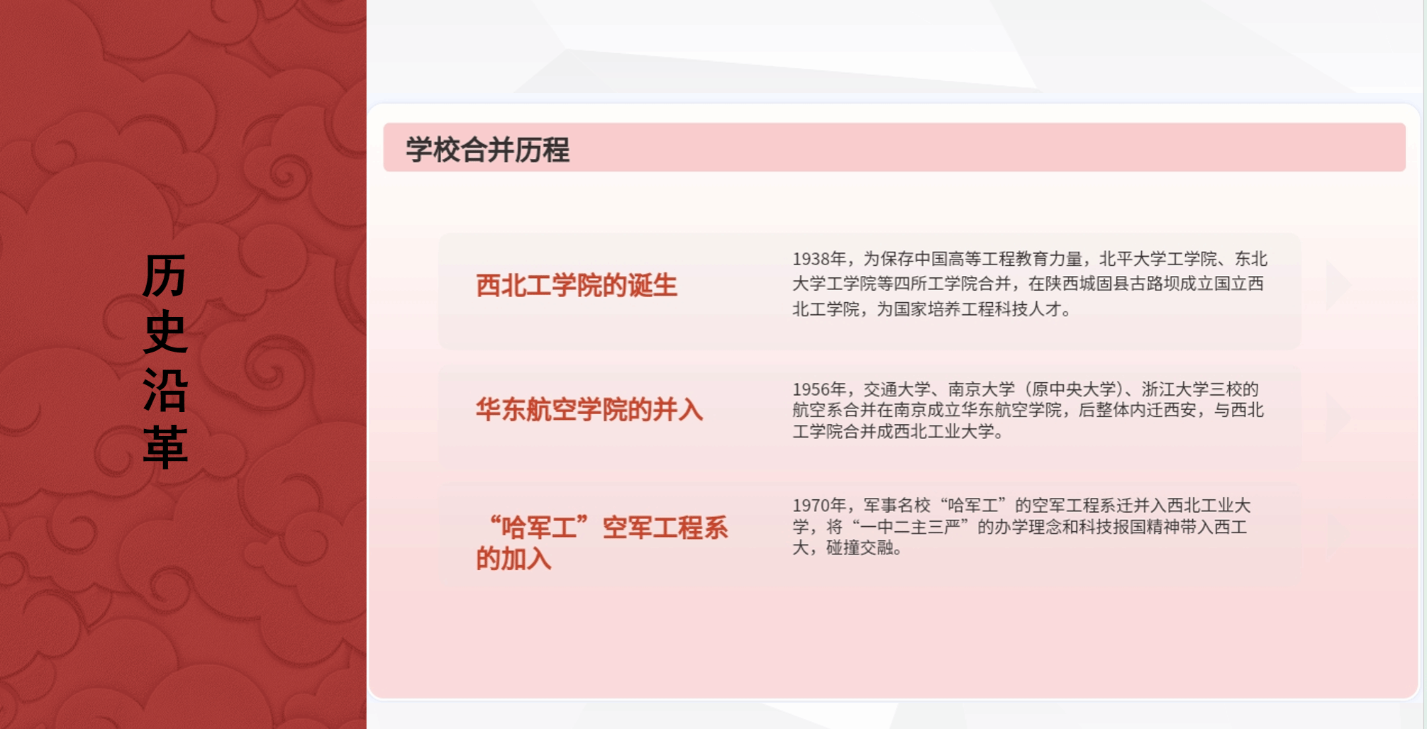 在新时代高等教育使命引领下,深化校史教育、传承红色基因是培养具有家国情怀的创新型人才的重要途径。超级大乐透-官方网站(中国)官方系统 研究生会于2025年3月24日组织"校史精神与学术使命"主题分享会,通过系统梳理西工大发展历程中的精神密码,引导青年学子将校史精髓融入学术研究与个人成长。本次报告聚焦校训内涵、建筑文化、历史沿革与科研成就四大维度,展现西工大87载砥砺奋进的壮阔篇章。