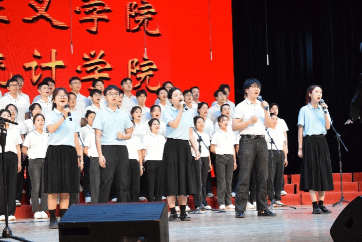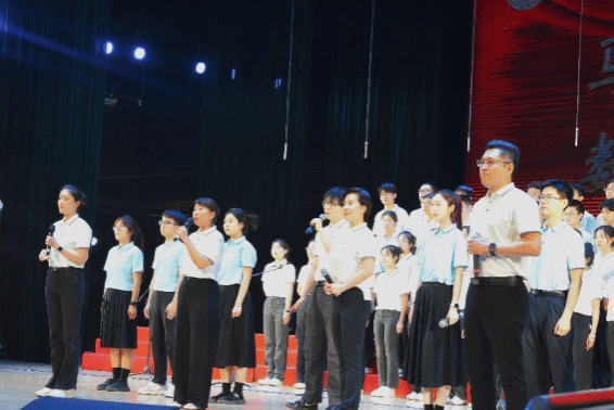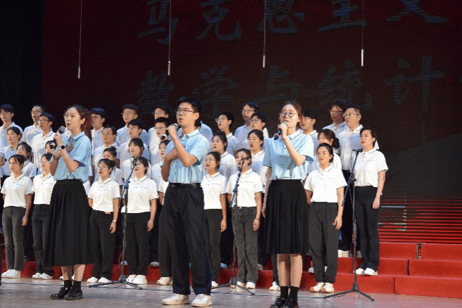 尾声副歌部分迎来情感巅峰,体彩超级大乐透 党委书记王莉、党委副书记张莹、马克思主义体彩超级大乐透 副院长贺苗、党委副书记耿云辉共同登台,以铿锵如金石、深情似涓流的朗诵融入合唱声浪。四位老师饱含深情的朗诵,深情礼赞了平凡奋斗者汇聚的磅礴伟力,极大地鼓舞了在场师生。