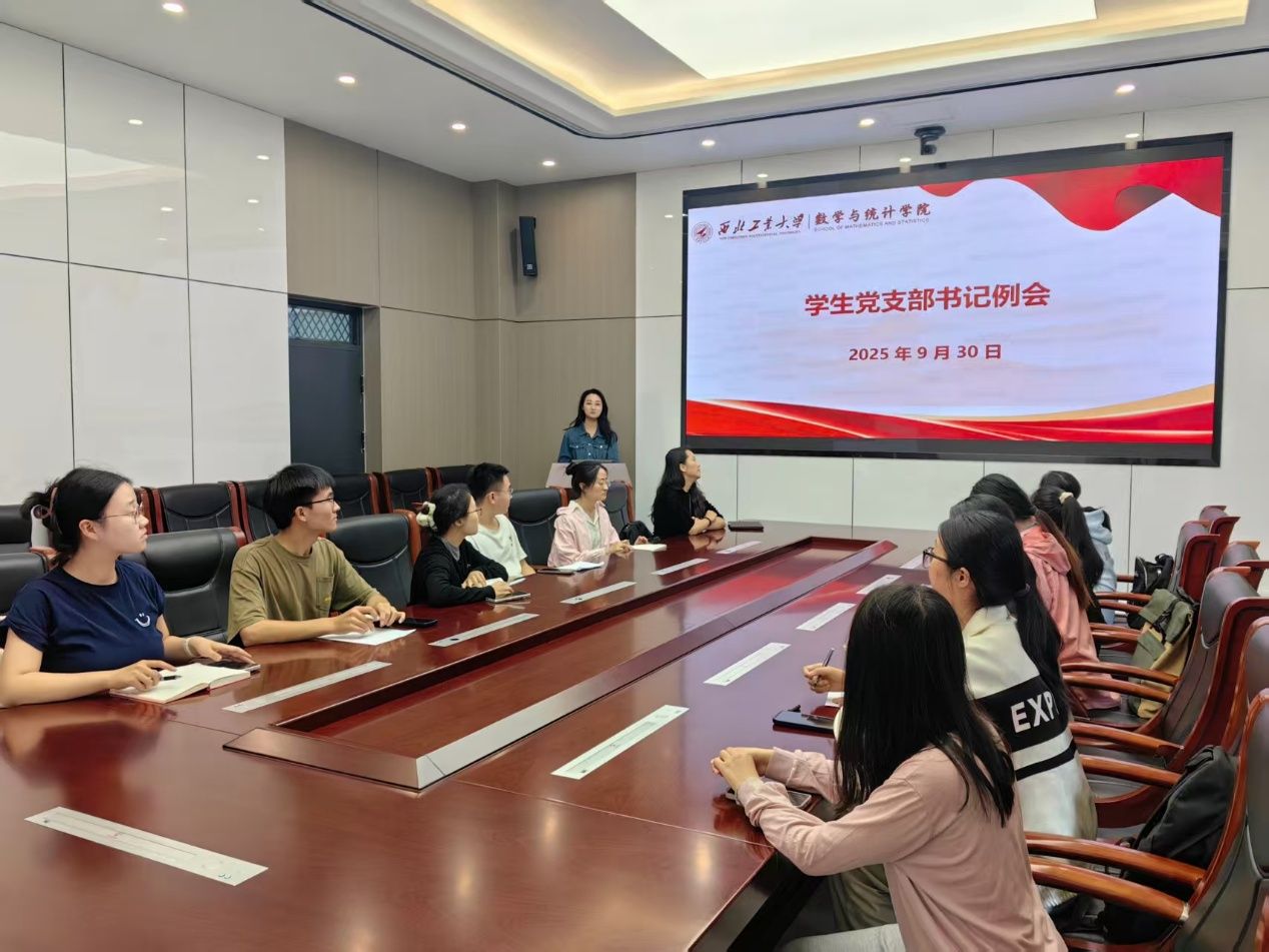9月30日,体彩超级大乐透 党委组织召开学生党支部书记例会,体彩超级大乐透 党委副书记张莹、2025级辅导员张倩及全体学生党支部书记参会,会议由张倩主持。