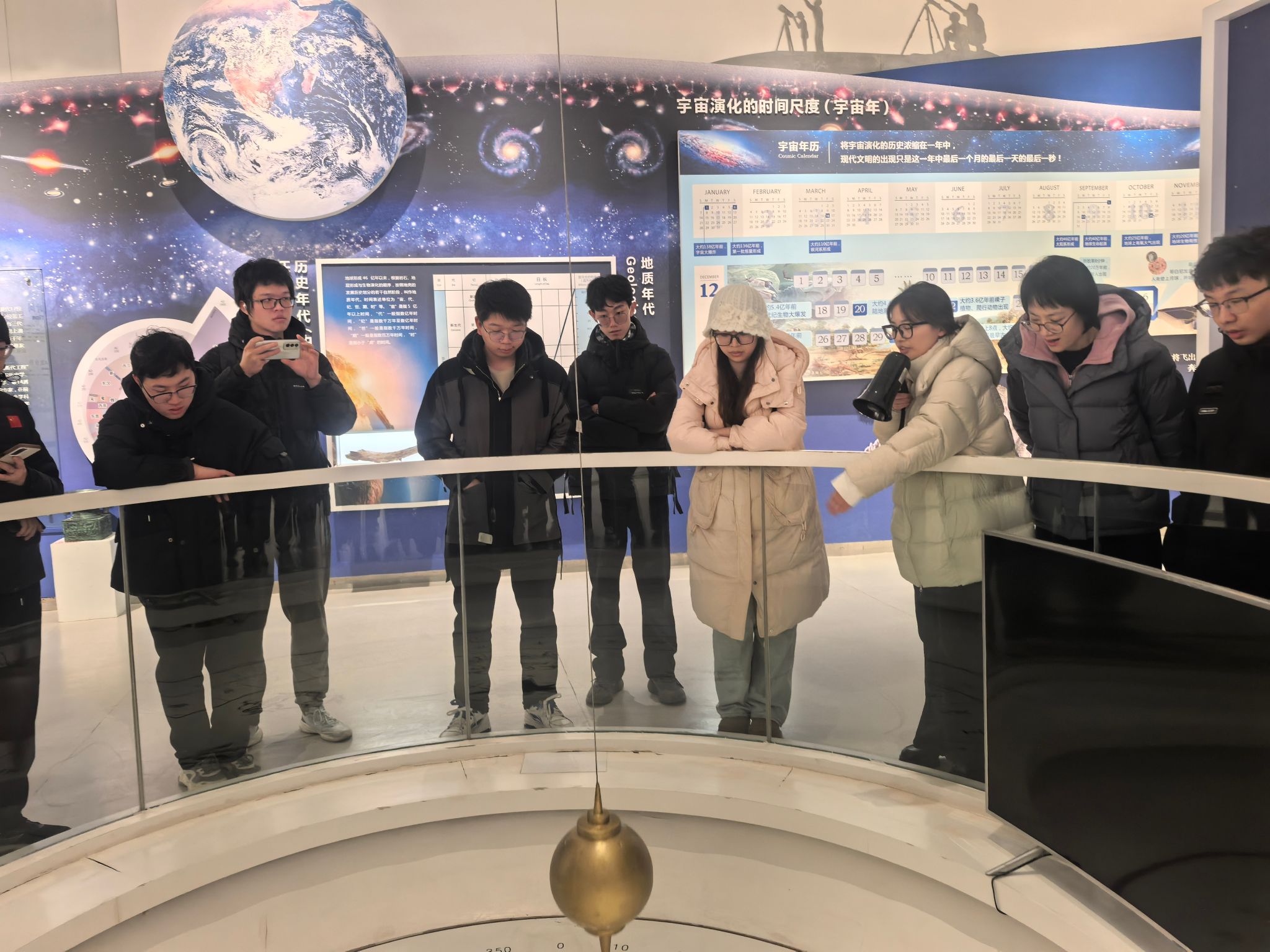 在参观过程中,同学们尤其被授时中心的发展历程与互动环节所打动。授时中心始建于上世纪六七十年代的“326工程”,如今已建成覆盖全国、辐射亚太的综合性授时体系。摆长12米、摆锤重量120公斤的傅科摆让大家直观见证地球的自转运动,仿制水运仪像台将古人的智慧带到当代青年面前,中国区域定位系统(CAPS)演示模型让大家体会到中国科技之力。