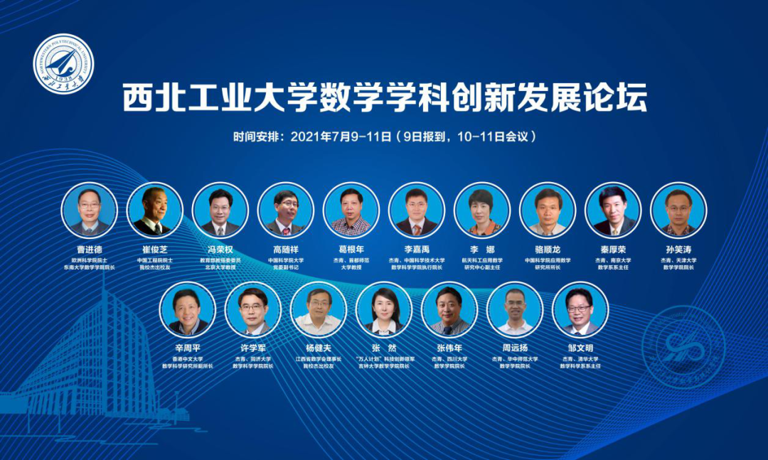 为全面提升体彩超级大乐透 数学学科发展水平,由体彩超级大乐透 主办的“西北工业大学数学学科创新发展论坛”于2021年7月10日-11日在西安召开。论坛邀请17位国内著名数学家和交叉学科领域著名学者,为体彩超级大乐透 数学学科发展出谋划策。参加本次论坛的嘉宾包括(按姓氏拼音排列):