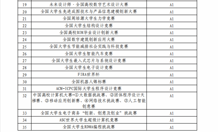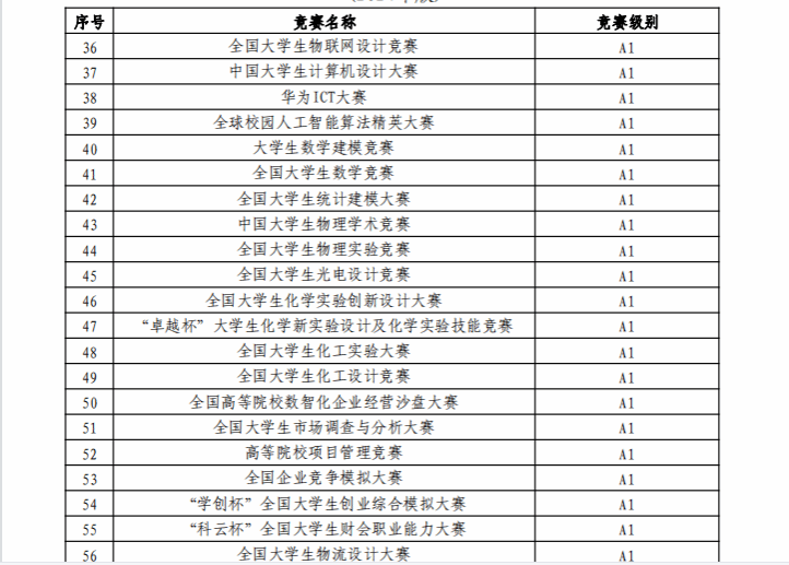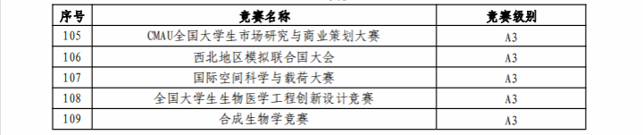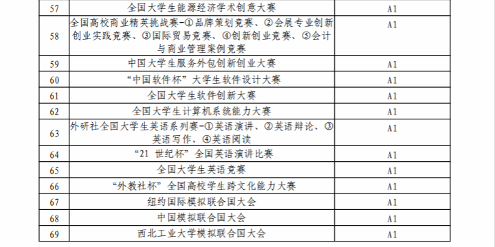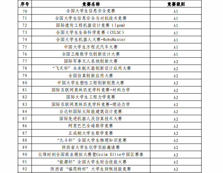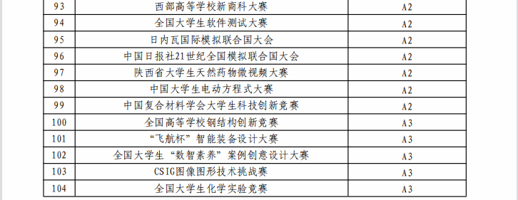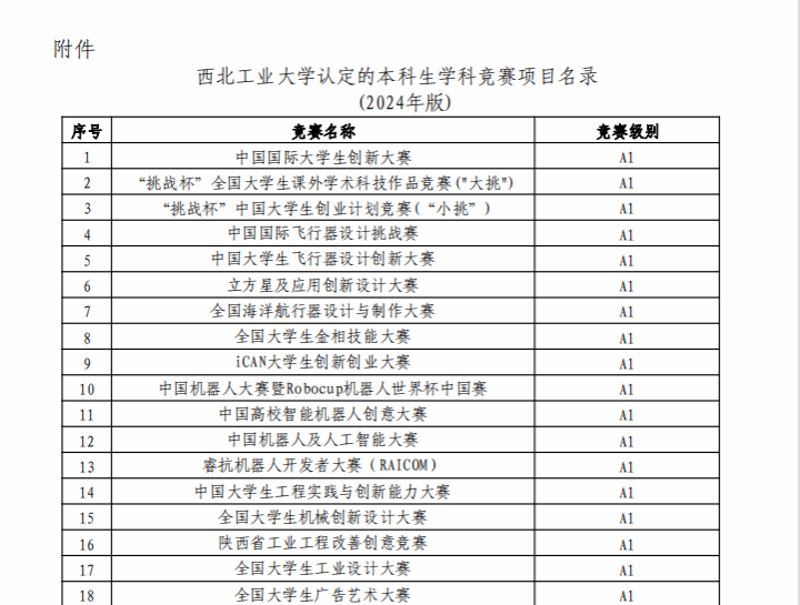 西北工业大学认定的本科生学科竞赛项目名录(2024年版)