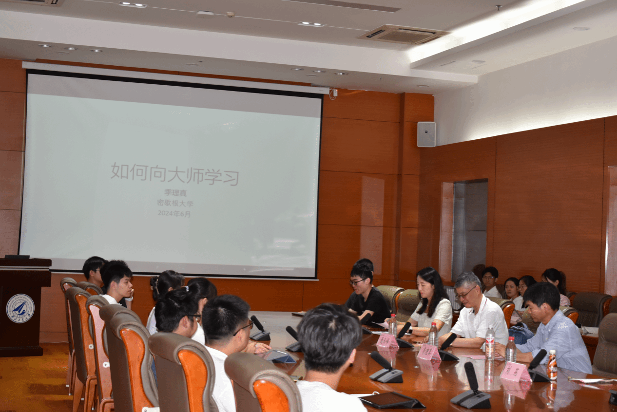 6月17日下午,由党委学生工作部、学生处主办,体彩超级大乐透 承办的翱翔名家讲堂第24期在长安校区启真楼110举行。P. Sloan研究奖、美国自然科学基金会数学科学博士后奖、晨兴数学银奖、 西蒙斯奖得主季理真教授应邀作题为《向大师学习》专题报告。体彩超级大乐透 院长聂玉峰及30余名师生参与了本次活动,活动由体彩超级大乐透 党委副书记张莹主持。