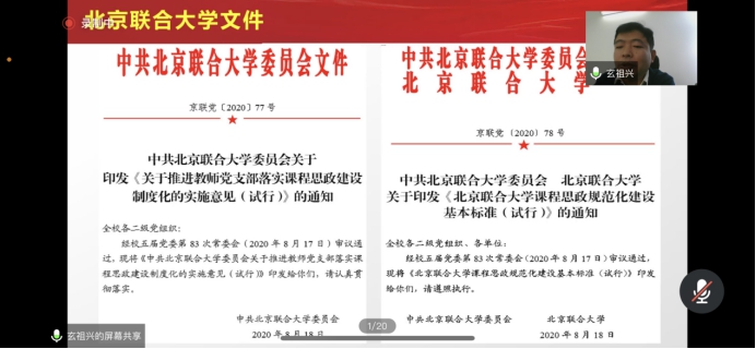 接着,哈尔滨工业大学尹逊波教授、北京科技大学储继迅副教授、北京联合大学玄祖兴教授、西北工业大学郜璐璐、宋伟杰老师依次分别从微积分课程建设与改革、教学竞赛经验分享、课程教学中课程思政的融入、课程创新、课程思政的实践等方面作了精彩的分享,并与参会老师进行的充分的交流和讨论。