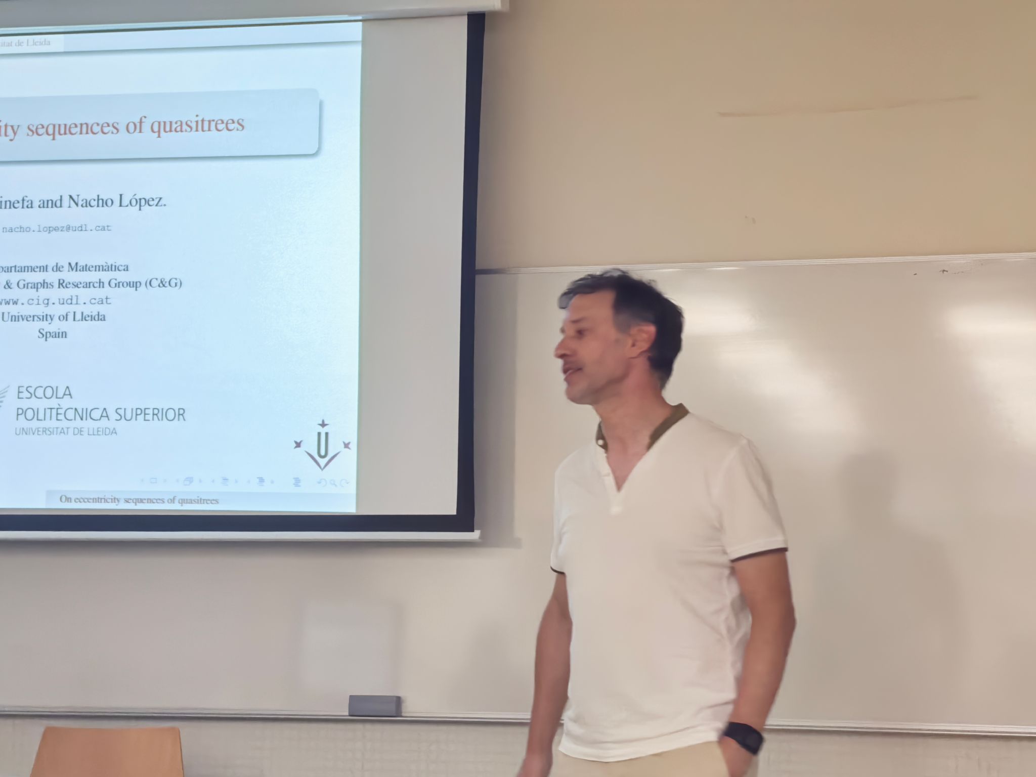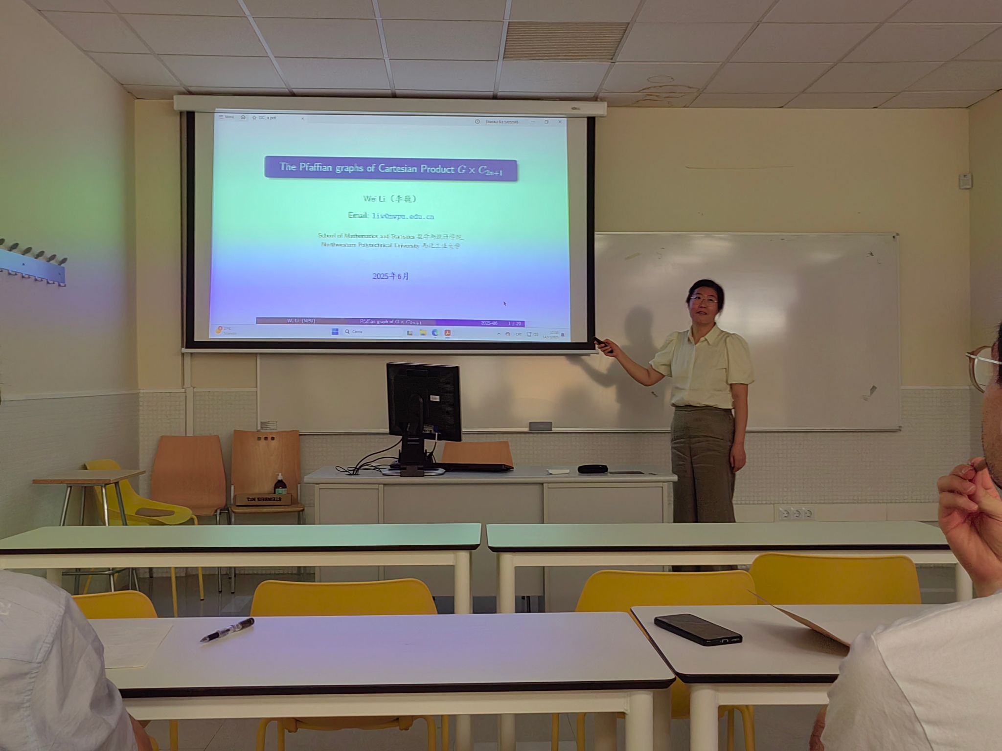 出访期间,团队与正在莱里达大学访学的张胜贵教授指导博士生宋筱頔进行深入交流,详细了解其学习科研与生活状况。宋筱頔同学在为期一年的访学中,与外方合作导师 Cristina Dalfó 教授及加泰罗尼亚大学 Miguel Àngel Fiol 教授密切协作,在 “token 图的代数连通度” 研究领域取得重要进展,已完成 3 篇学术论文(1 篇已发表,2 篇投稿中)。团队对其成果给予肯定,并鼓励她持续深耕,成为两校学术交流的纽带。