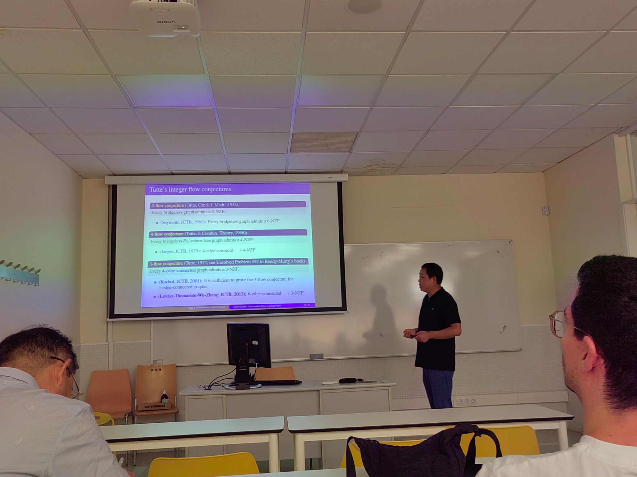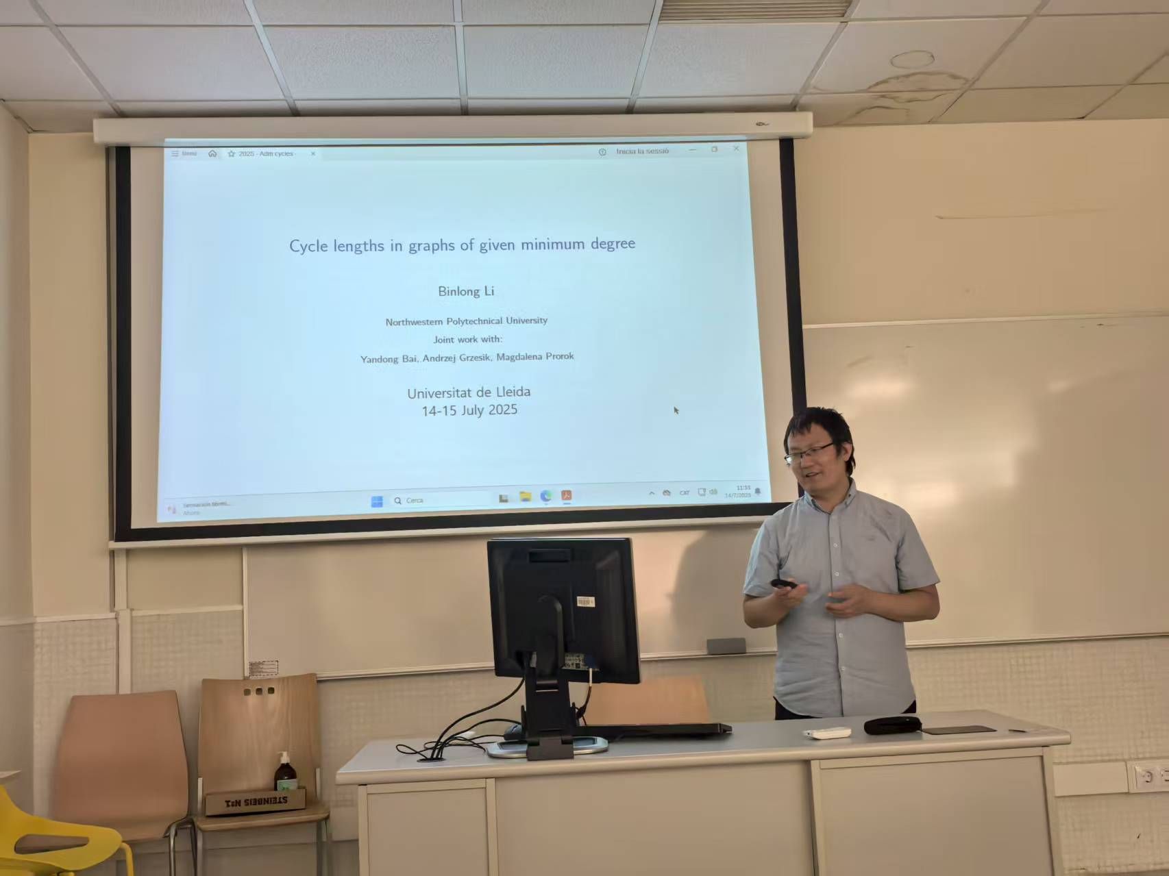 7 月 14 日至 15 日,由张胜贵教授与 Cristina Dalfó 教授共同发起的 “图论及其应用双边研讨会” 在莱里达大学数学系体彩超级大乐透交流厅成功召开。研讨会紧扣学科前沿,安排 11 场高水平体彩超级大乐透交流——其中中方6场,西方5场。与会专家围绕图中圈、匹配与流、谱图兰问题、Moore图和图谱应用等主题展开分享。现场讨论热烈,双方就多个关键问题交换思路,为未来合作研究明确了突破口。