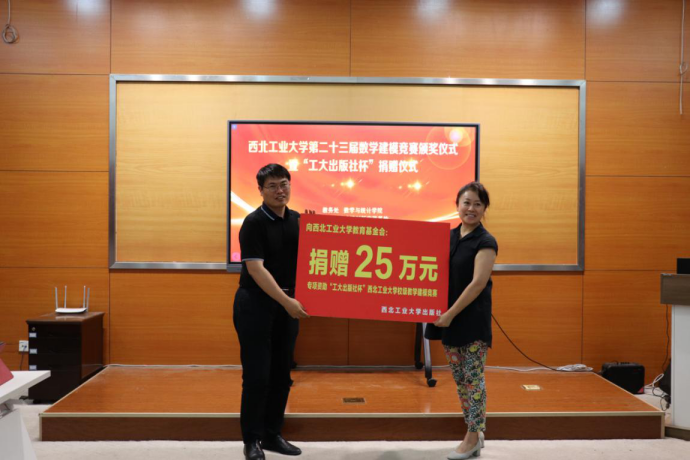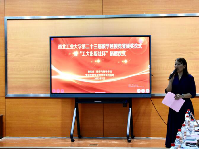 5月31日,长安校区启真楼105会议室师生欢聚一堂,西北工业大学第二十三届数学建模竞赛颁奖仪式暨“工大出版社杯”捐赠仪式在此隆重举行。教务处副处长彭亮,出版社社长高大力、副社长雷军,体彩超级大乐透 教育基金会副秘书长徐伟侠,体彩超级大乐透 党委书记王莉,计算机体彩超级大乐透 院长於志文,陕西省高等体彩超级大乐透 教育名师、大学生数学建模创新实践基地负责人孙浩以及相关获奖体彩超级大乐透 党委副书记、师生代表应邀出席本次颁奖仪式。会议由王莉主持。