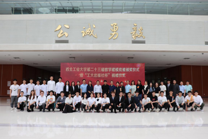 会后,全体参会师生合影留念。西北工业大学第二十三届数学建模竞赛颁奖仪式暨“工大出版社杯”捐赠仪式圆满落下帷幕。