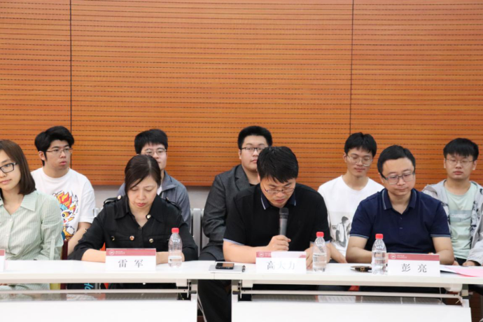 在师生交流环节中,计算机体彩超级大乐透 院长於志文首先对本体彩超级大乐透 获得特等奖的三名学生表示祝贺,并以学生代表发言内容结合自身经历,分享了个人在工大本科求学阶段连续两次参加体彩超级大乐透 数模竞赛的体会和感悟。他在总结中强调,在大学参加竞赛的机会是非常可贵的,希望同学们要好好把握这个重要的人生体验,时刻充满勇气与自信。通过不同的平台,磨练个人技能,突出自身特色,每个阶段都为自己树立目标并为之不断努力。於院长的发言,情深意切,令人深省,引得在场学生频频鼓掌。
