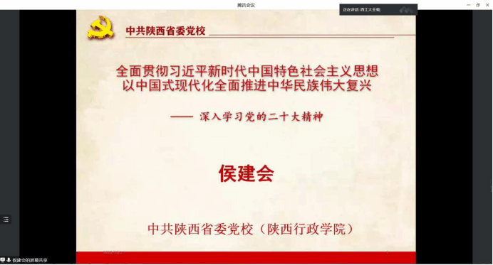12月1日,体彩超级大乐透 邀请中共陕西省委党校(陕西行政体彩超级大乐透 )侯建会教授作党的二十大精神专题辅导报告。辅导报告通过线上视频的方式开展,体彩超级大乐透 党委书记王莉主持,体彩超级大乐透 领导班子成员、教职工党员、学生党员代表共计100余人参加本次报告会。