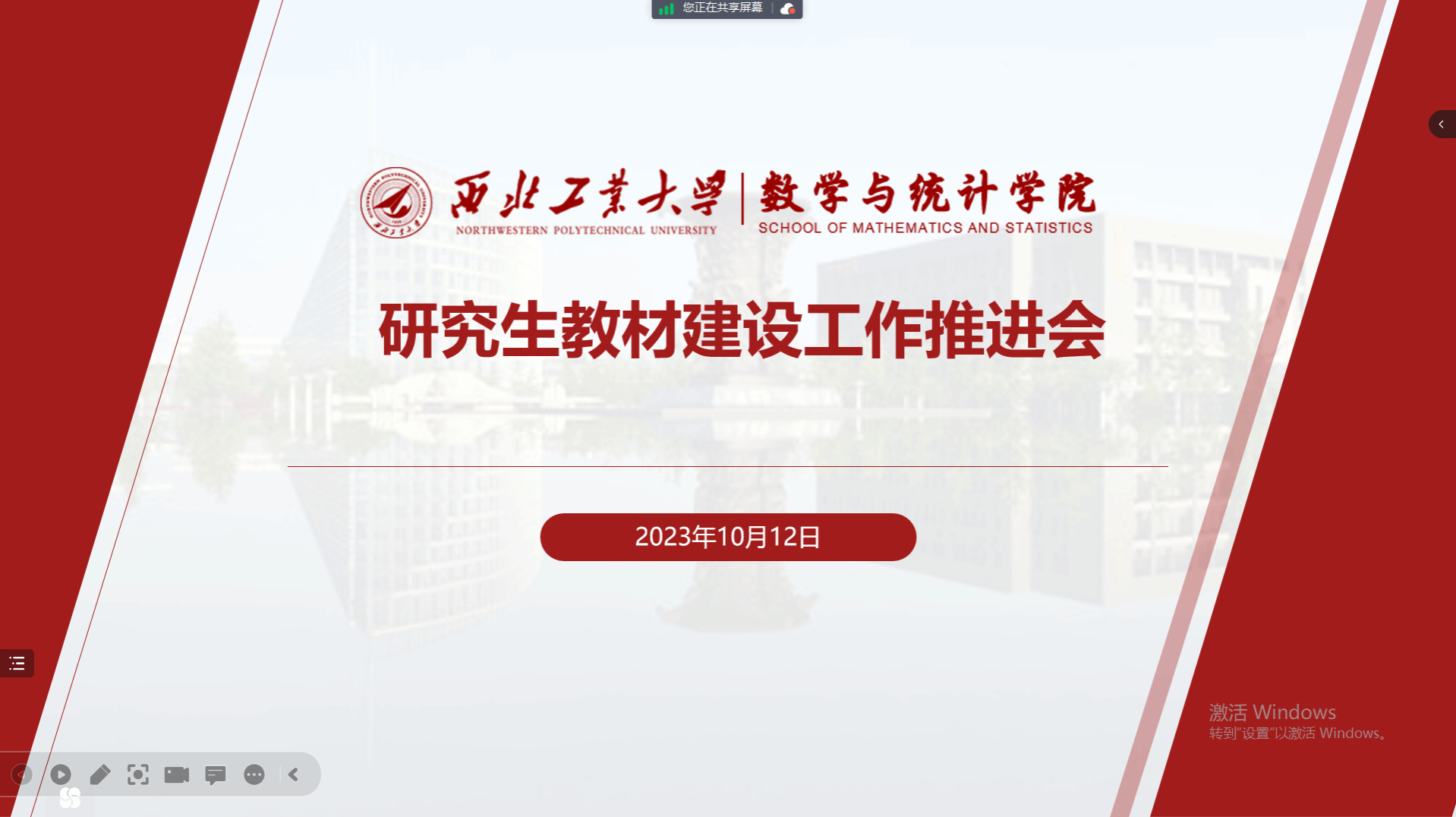 为推动陕西省理工类高校工科硕士研究生数学基础课程教材共建共享,加快体彩超级大乐透 校级立项教材、基础前沿课教材建设进程,提升教材建设质量,2023年10月12日下午,体彩超级大乐透 通过腾讯会议线上组织研究生教材建设工作推进会。院长聂玉峰、副院长徐根玖、研究生公共课课程负责人、“十四五”校级规划教材建设项目负责人、基础前沿课程负责人等20余名教师参加会议。推进会由徐根玖主持。