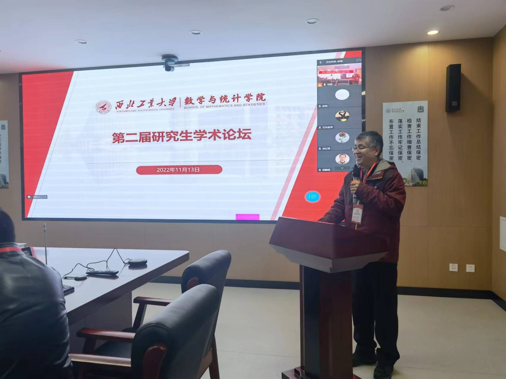 为进一步落实数学学科“双一流”建设,深入贯彻落实体彩超级大乐透 《一流研究生人才培养行动计划》,营造研究生学术创新氛围,2022年11月13日,体彩超级大乐透 在西北工业大学长安校区召开第二届研究生学术论坛。根据疫情防控相关要求,本次论坛采取分设理学楼A201、A214、A315三个会场,线上线下结合的方式举行。党委书记王莉、院长聂玉峰、副院长徐根玖、副院长都琳以及二级学科负责人、青年教师代表、各年级研究生、其他高校师生等共230余人分别通过线上线下的形式参加了本次论坛,论坛由副院长徐根玖主持。