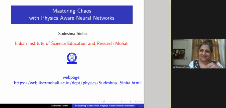 Sudeshna Sinha教授在线做了邀请报告。研讨会还展示了来自二十多所高校和科研院所的41个墙报,其中32人进行了5分钟的Fast Talk汇报。