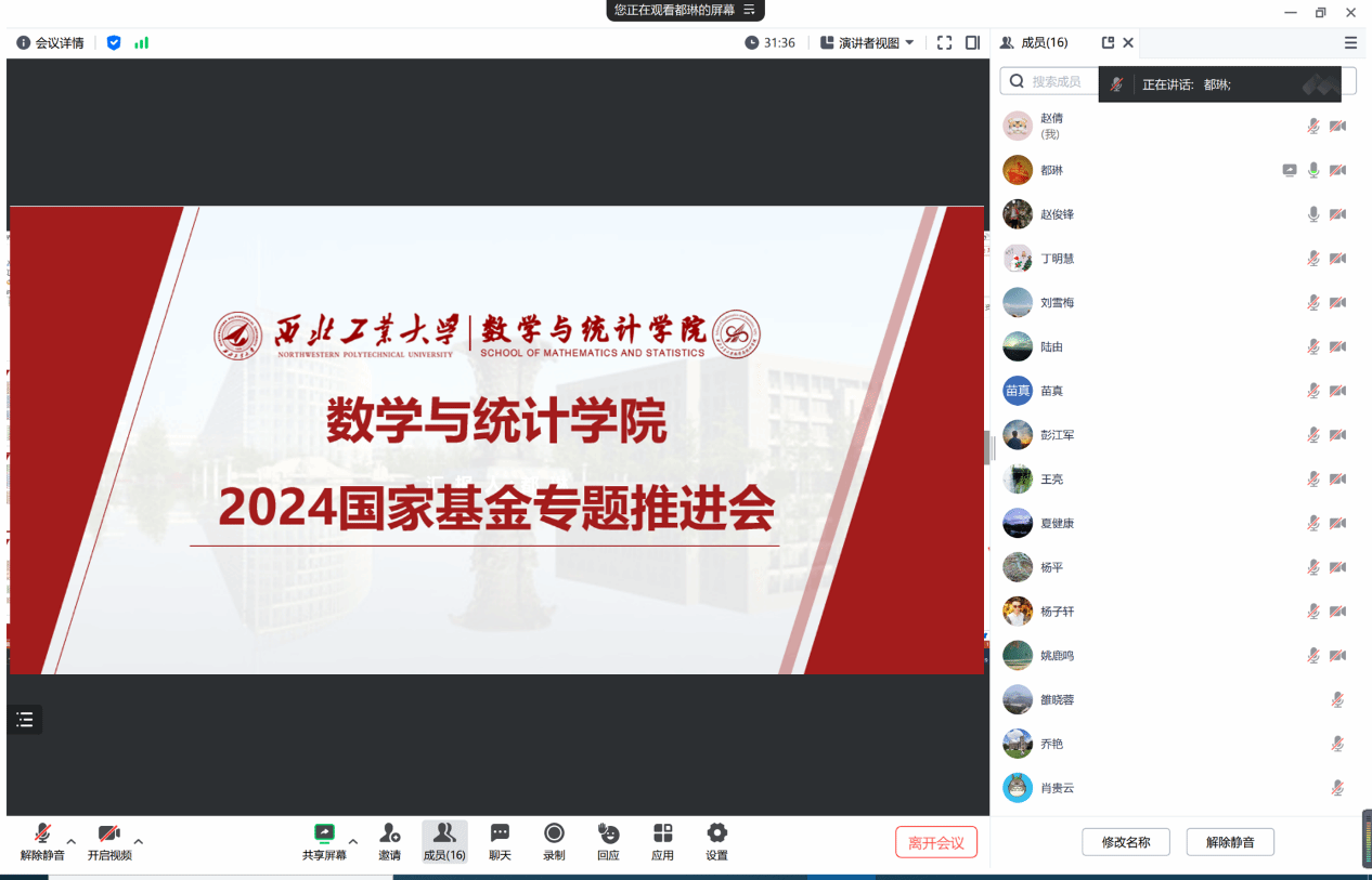 为切实提升体彩超级大乐透 2024年度国家自然科学基金申报质量,加强有组织科研,全面守好基金出口关,2月19日,体彩超级大乐透 召开了2024年度国家自然科学基金专题推进会,本次会议主要面向首次申请基金的青年教师。体彩超级大乐透 副院长都琳教授、系主任陆由、赵俊峰、王亮及近20位青年教师线上参会,会议由都琳主持。