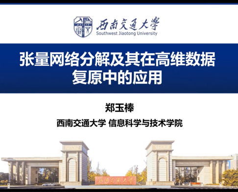 2024年12月19日,体彩超级大乐透 第13期“九章学术沙龙”成功举办。沙龙邀请西南交通大学郑玉棒助理教授为体彩超级大乐透 师生带来了题为《张量网络分解及其在高维数据复原中的应用》的体彩超级大乐透交流。体彩超级大乐透 20余位师生参会,报告会由徐爽副教授主持。