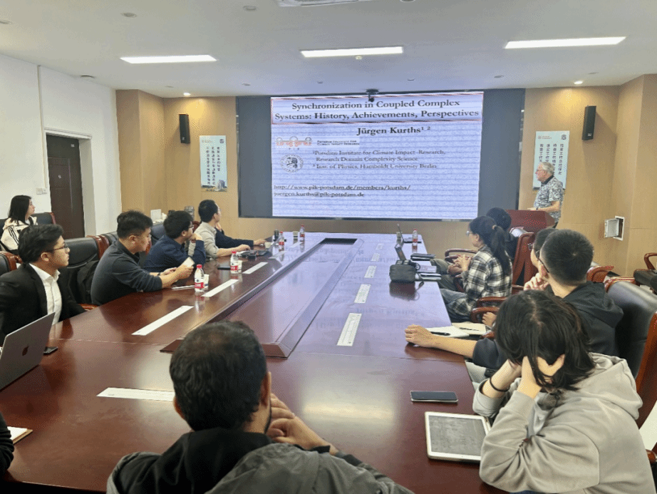 2024年10月14日,德国洪堡大学Jürgen Kurths教授受体彩超级大乐透 许勇教授邀请,于长安校区理体彩超级大乐透 201会议室作题为“Synchronization of coupled complex systems - basics, history and perspective”的体彩超级大乐透交流。多位教师和20余位研究生共同参与并展开了热烈的学术讨论,本次报告由李永歌副教授主持。