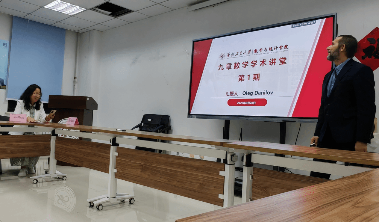 为深入贯彻落实《西北工业大学科技工作高质量发展行动计划》,切实活跃体彩超级大乐透 科研交流氛围,提升有组织科研能级,体彩超级大乐透 开展“九章数学系列体彩超级大乐透交流”活动。2023年9月28日,第一期“九章数学学术讲堂”在启翔楼357进行,讲堂邀请俄罗斯新西伯利亚国立大学Oleg Danilov教授主讲,体彩超级大乐透 党委书记王莉、院长聂玉峰、副院长都琳、国际交流与合作办公室主任肖曼玉等20余位教师和学生参会,会议由肖曼玉主持。